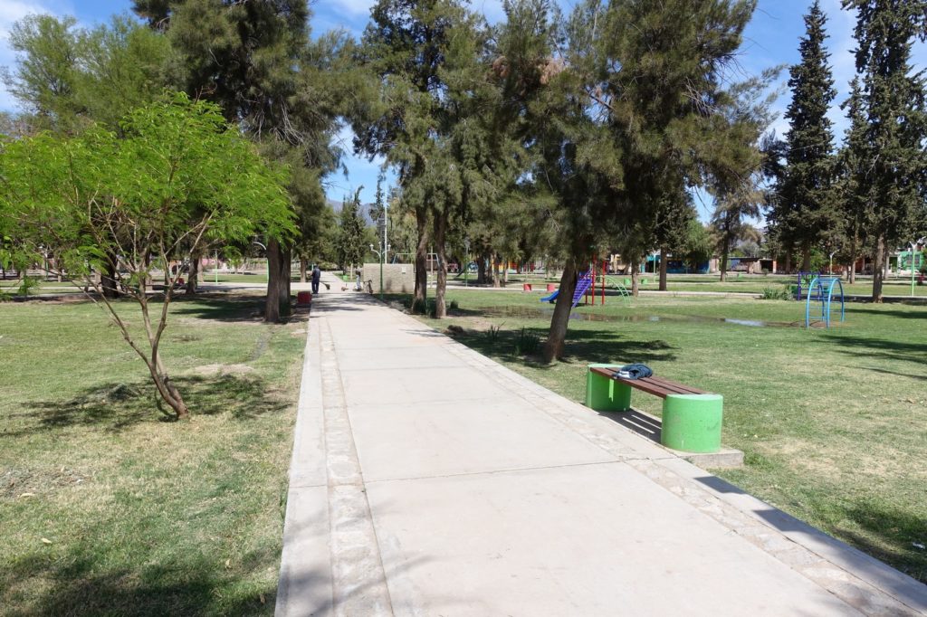 Nous avons décidé de faire un détour par Huaco pour nous ravitailler, nous ne voulons pas courir le risque de ne rien trouver à San Roque. Il nous faut faire tous les negocios de la ville pour acheter presque toute notre liste et il manque encore des tomates. Nous ferons avec. Les enfants se font offrir une glace et profitent des jeux sur la place.