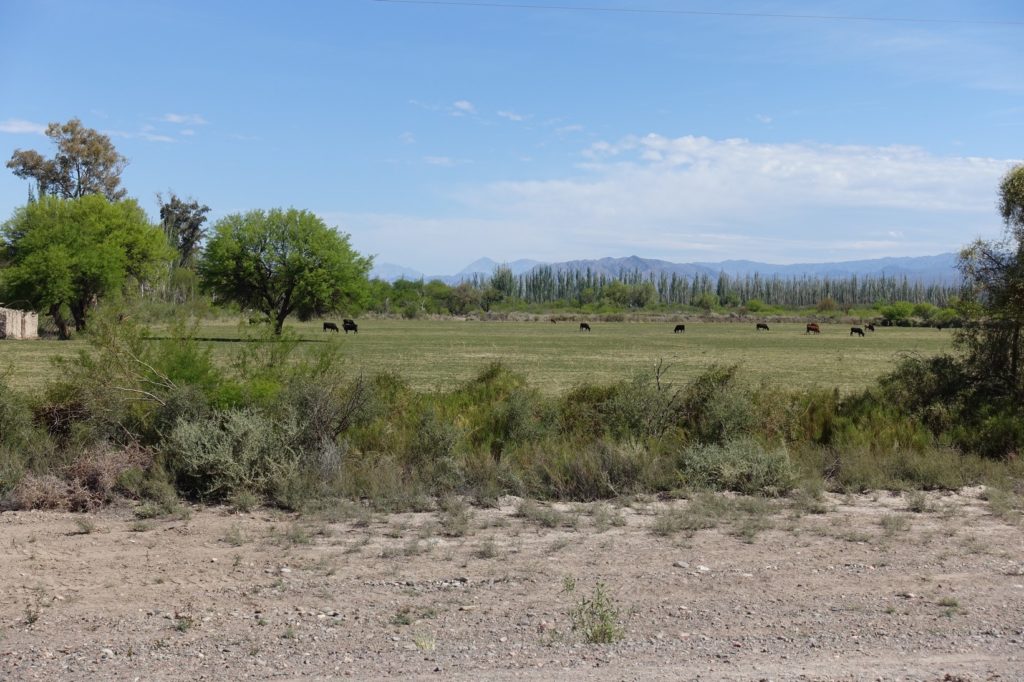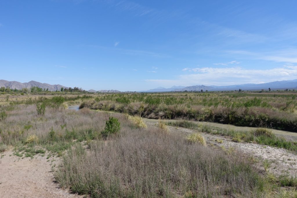 Nous revoilà donc dans la pampa avec ses lignes droites… Nous nous faisons doubler par une voiture blanche qui s’arrête un peu plus loin. Ce sont Raoul et Claudia ! Ils se rendent à San Juan pour visiter de la famille. Nous papotons, ils nous donnent leurs coordonnées. Ils nous offrent des noix et des barres aux cacahuètes. C’est gentil de leur part. Ils se remettent en route, nous profitons de cet arrêt pour faire notre pause déjeuner.