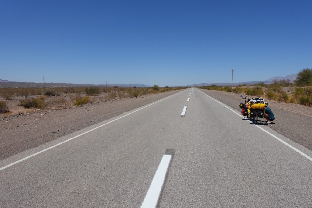 Un homme nous double et s’arrête. Il nous prend en photo. Nous discutons un peu. Il habite à Buenos Aires et travaille de temps en temps à Rivadavia où il a une autre maison. Il nous donne ses coordonnées, si nous passons à ces endroits, il veut nous inviter à manger un bon asado! Pas de soucis, nous prenons note 🙂