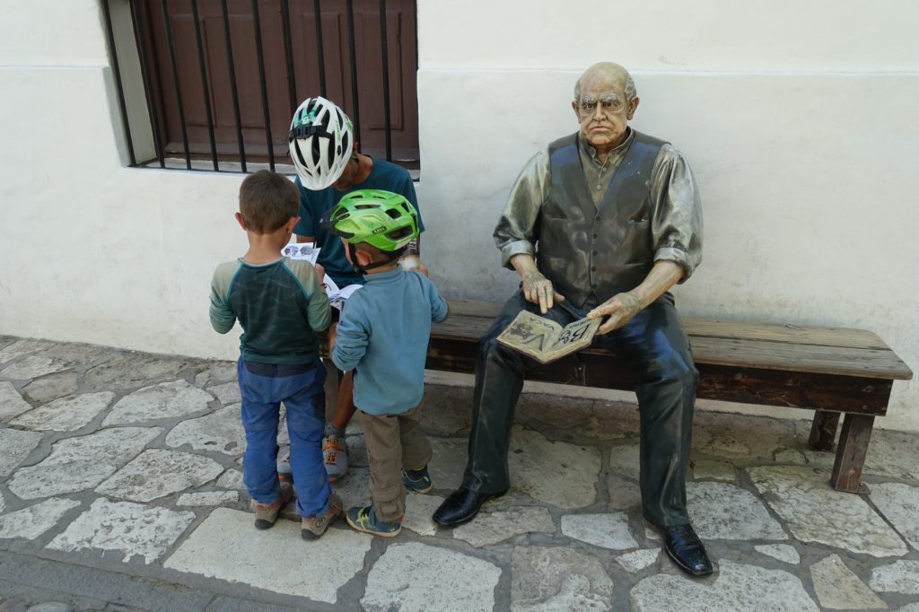 Nous rejoignons la civilisation et faisons la pause déjeuner sur une petite place. Benjamin, un petit jeune, vient jouer avec les enfants, il en profite pour nous poser des questions, surtout sur Mbappé 😀