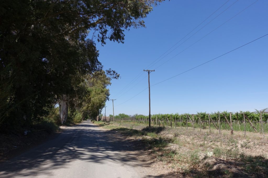 Celina nous guide à travers San Juan et nous montre une route que nous allons pouvoir suivre un bon moment afin d’éviter la ruta 40, qui est presque une autoroute sur cette portion ! C’est le jour des élections présidentielles. Près des écoles, beaucoup de voitures sont garées, les gens vont voter. Ici, très peu d’abstention a priori, ceux qui ne votent pas ont une amende.