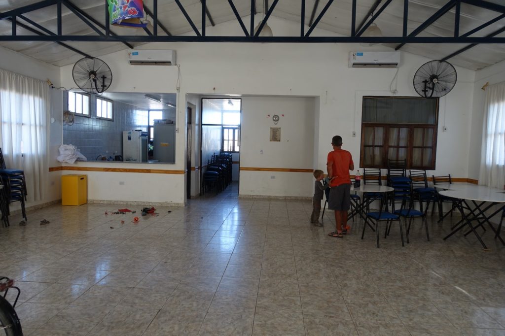 Les enfants vont profiter des jeux sur la place. Nous ne trouvons pas de wifi pour joindre Zulma mais nous avons récupéré la carte sim du téléphone que Papa a trouvé. C’est une carte avec un compte pré-payé, il n’y a plus de crédit mais nous avons la possibilité de prendre une journée internet illimité gratuite. Nous l’activons et réussissons à joindre Zulma ! Elle a un endroit pour nous ! Quelqu’un vient nous amener les clés et nous indique où aller. Nous arrivons dans les locaux d’un club cycliste. Une chose est sûre, nous serons très bien ici !