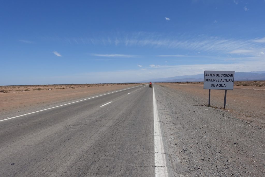 Nous arrivons dans la province de Mendoza et franchissons un péage puis un poste de contrôle phytosanitaire où les vélos se font asperger d’un produit par dessous, l’équipage en prendra également au passage. Il n’y a plus d’accotement, par contre, il y a toujours autant de circulation. Ce n’est pas agréable du tout. Nous faisons régulièrement des pauses et nous nous motivons pour continuer à avancer. Au moins une bonne nouvelle, le vent s’est calmé. Autre bonne nouvelle, un warmshower est disponible pour nous accueillir à Mendoza. Super !