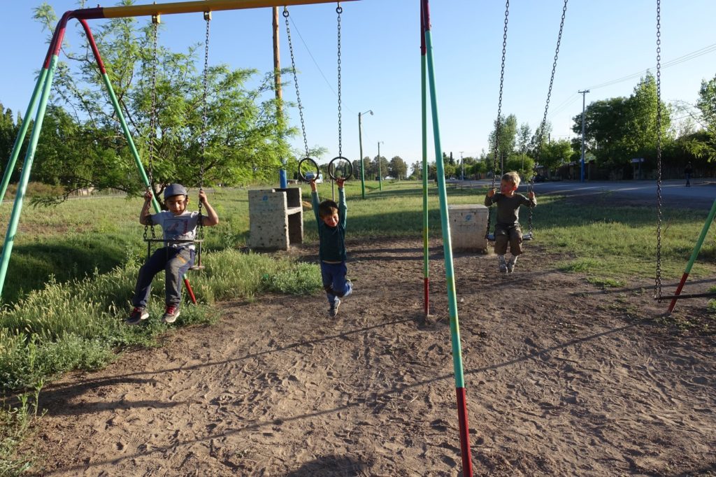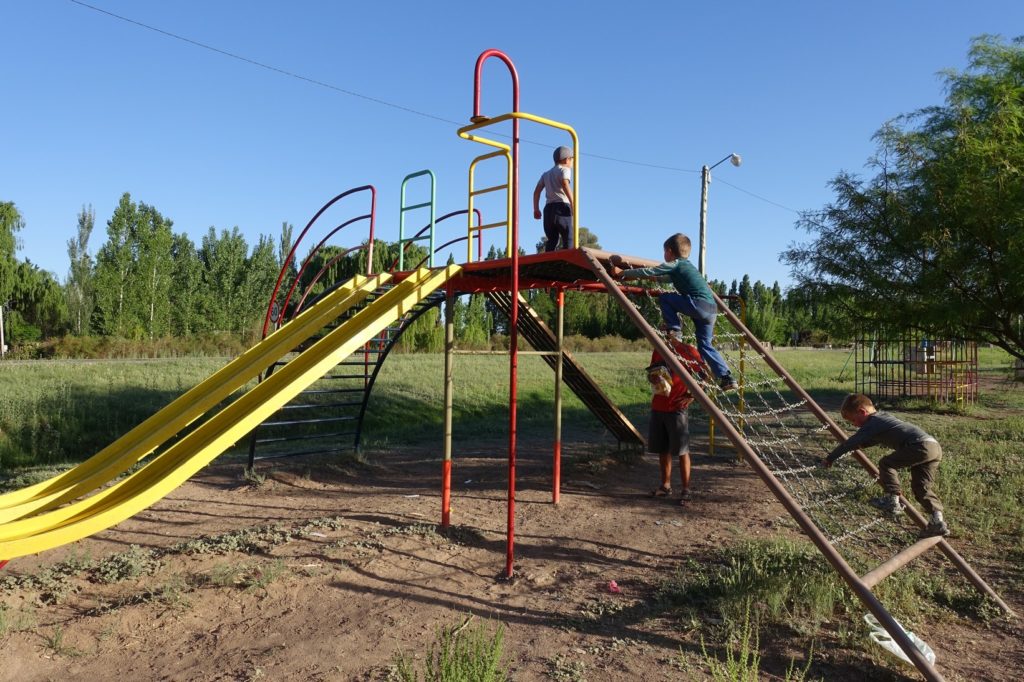 Pendant que nous allons monter la tente, les enfants restent au glacier avec la Maman de Milan. A notre retour, nous emmenons les trois enfants aux jeux pas loin de la maison.