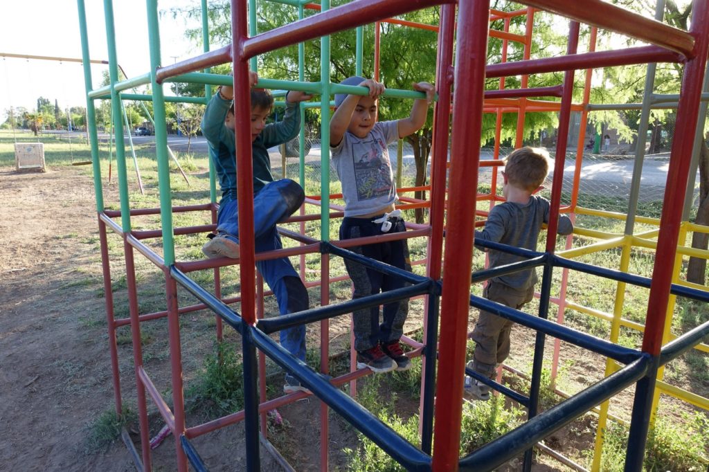Nous touchons notre but, nous voilà à Jocoli. Sur la gauche de la route, un glacier ! Parfait pour le goûter ! En Argentine, nous ne risquons pas de maigrir. Cela risque même d’être l’inverse ! Nous demandons à Gladys si elle sait où nous pourrions camper pas loin. Elle nous propose de le faire dans sa future maison. C’est très gentil de sa part et ce sera parfait pour nous ! Nous nous posons, dégustons notre goûter, les enfants se posent devant la télévision avec Milan le petit-fils de Gladys.
