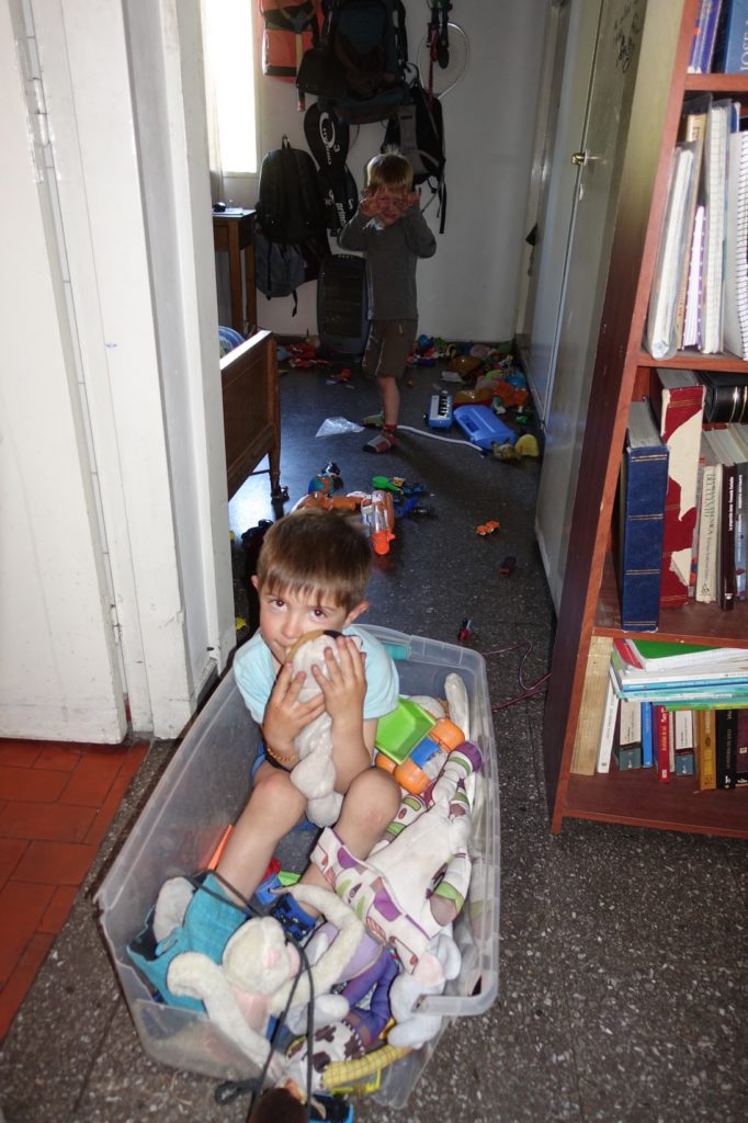 Le repas du midi est vite pris. Andrés, qui est revenu du travail pour sa pause du midi, nous commande un taxi pour ce soir. Nous disons au revoir à Renata et Belisario. Puis Martin et Lucas jouent pendant que les parents finissent de tout emballer.