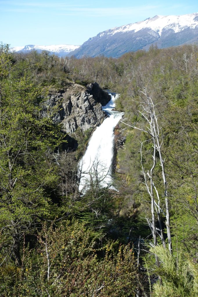 Nous atteignons la cascade Vuliñanco Elle coule fort. Sur le parking, nous discutons avec des français. Ils sont venus pour le mariage d’un de leur ami à Buenos Aires et en profitent pour visiter.