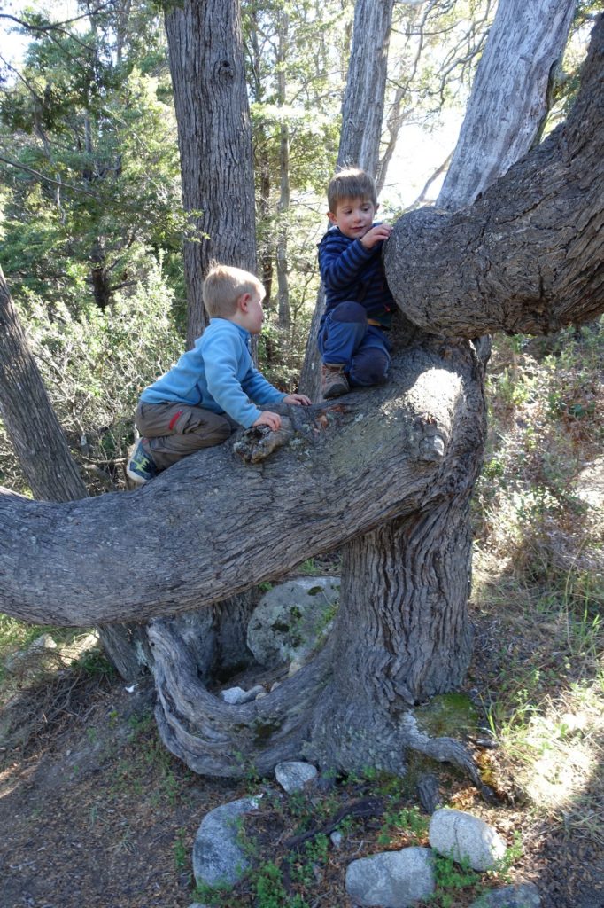 Après avoir pris un bon petit-déjeuner, nous finissons de tout ranger. Les enfants jouent dans les arbres en attendant. Le soleil est sur le lac, c’était vraiment top comme lieu de bivouac !
