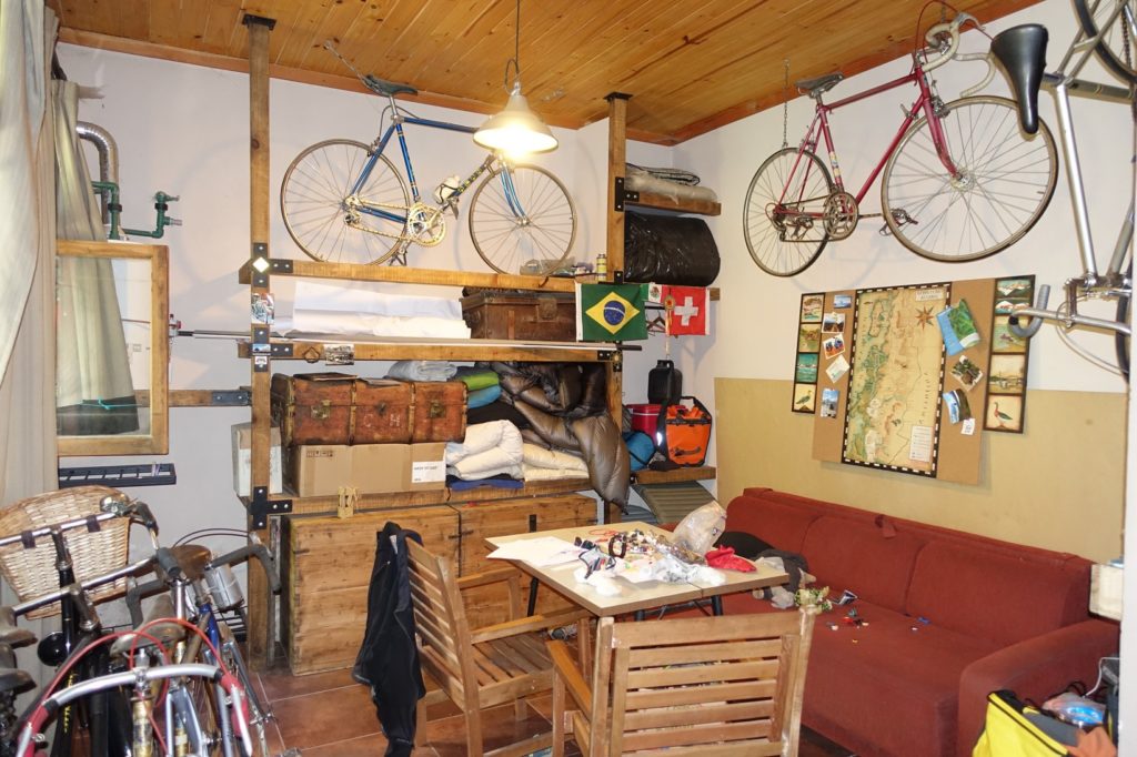 Nous prenons le déjeuner dehors, il fait bon, le jardin est agréable. Nous restons tranquille une bonne partie de l’après-midi. Miguel travaille dans son atelier. C’est un passionné de vélo, il fabrique des copies de vélos mythiques et crée également ses propres modèles. Le studio et l’atelier sont une vraie mine d’or !