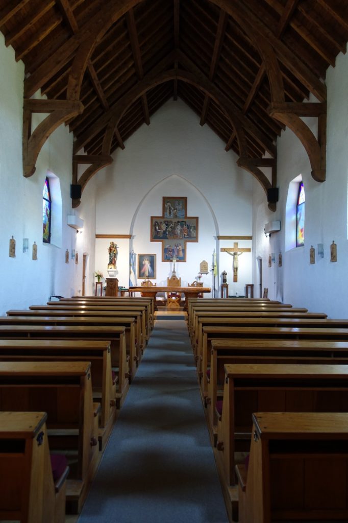 Nous arrivons assez rapidement à Villa Llao Llao. Nous allons faire une cache puis profitons de la chapelle située à l’entrée de la ville. Nous découvrons l’existence d’une appli mobile pour donner les horaires des messes du monde entier !