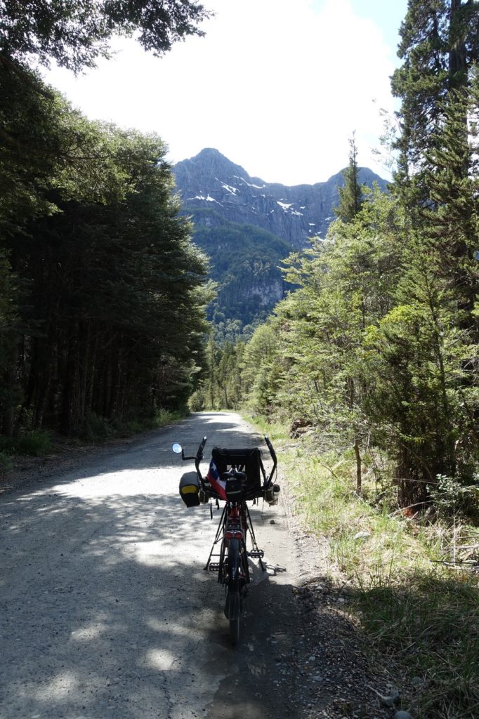 Peulla, prochaine étape, est à 27 kilomètres. Ça commence par 3 km de montée, et quelle montée !!! La pente est très raide, il y a des gros cailloux genre galets partout. Nous réussissons de temps en temps à pédaler, sinon, nous retrouvons notre statut de piéton pousseur de vélo. Nous avançons tout doucement, mais nous avançons.