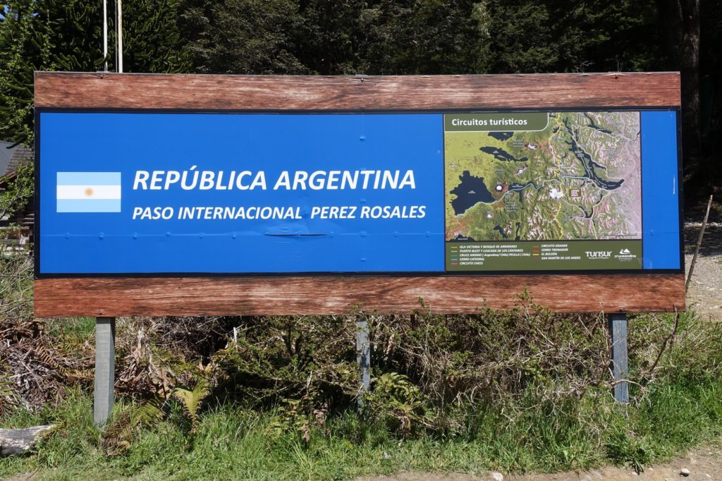 Voilà enfin le sommet et donc la frontière (physique). Nous entrons au Chili ! Autant l’Argentine souhaite la bienvenue de son côté, autant le Chili laisse faire le parc national…
