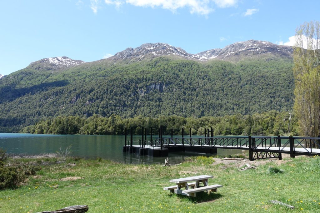 Nous plions toutes les affaires et sommes prêts à partir à 8h30 ! Parfait ! Nous arrivons vite à l’embarcadère, nous n’étions qu’à un petit kilomètre de descente. Nous nous enregistrons, bonne surprise, nous n’avons pas besoin de payer l’entrée du parc. Nous allons prendre un café pour patienter. Nous faisons la connaissance d’un couple d’argentins. Ils partent en excursion au lago Frías, nous allons donc partager les mêmes bateaux.