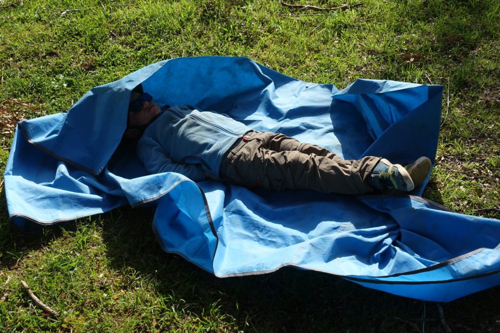 Lucas est complètement naze et demande à s’allonger. En moins d’une minute il s’endort ! Martin joue aux Lego en attendant que la tente soit montée et que le repas soit prêt.
