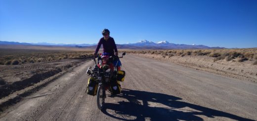 Nous prenons notre petit-déjeuner, nous sommes lents ce matin. Nous regardons toujours où nous pourrions dormir ce soir. C’est bien la première fois que nous nous préoccupons vraiment de notre point de chute. Mais il faut dire que les hébergements sont chers au Chili ! Au final, nous partons sans avoir rien trouvé. Ah si, des bouchons de valve pour Fred ! Juste avant de partir, le vélo de Papa finit par terre sur le parking, et crac, de nouveau des attaches de cassées ! Ce coup-ci, nous n’en avons plus de rechange, il va falloir se débrouiller. Elles tiennent encore un peu, ça devrait faire l’affaire.