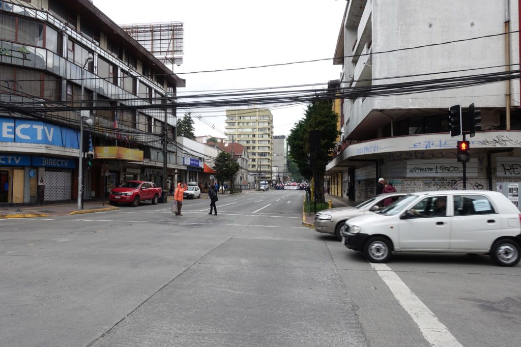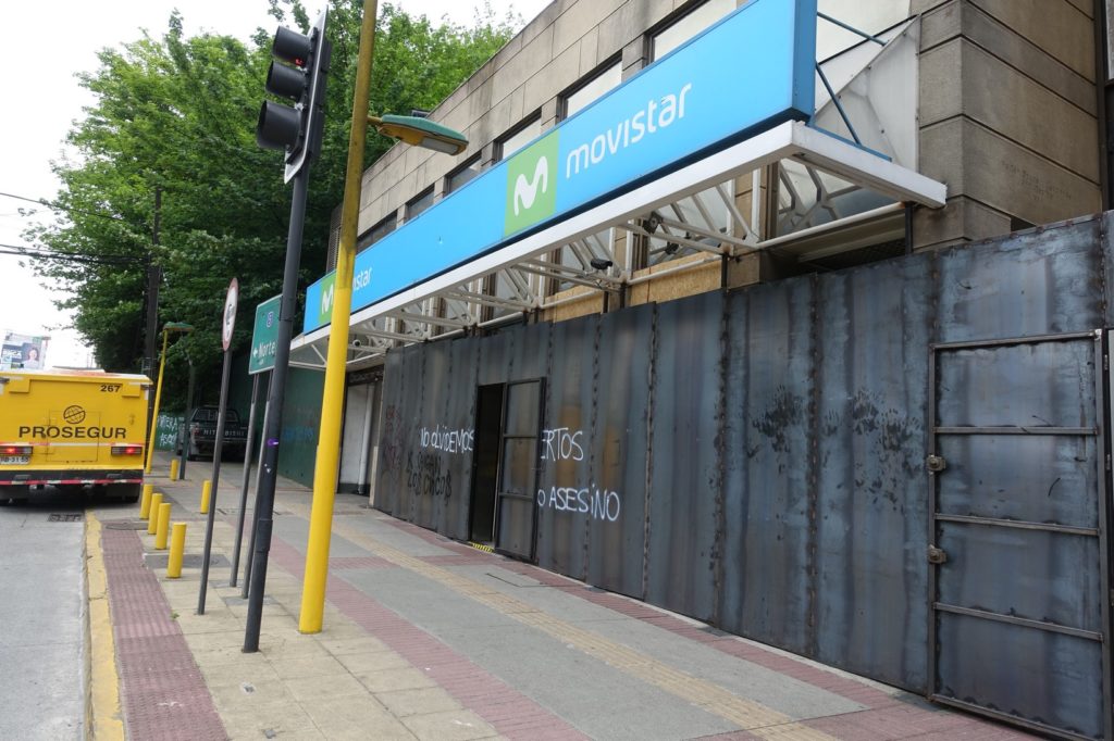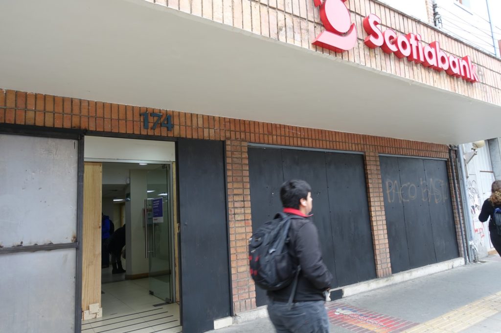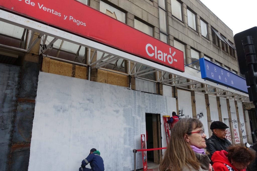 Nous commençons par aller retirer des sous, toutes les banques sont barricadées ! Nous allons ensuite recharger notre carte SIM chez Claro. Ici aussi, il n’y a plus qu’une porte… Nous partons et entendons une manifestation s’approcher. Tout semble pacifiste, mais nous ne traînons pas.