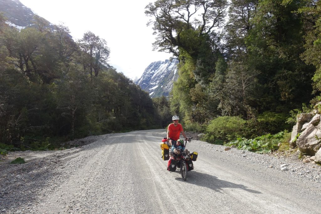 De nouveau, nous retrouvons le fjord et une piste. Il y a un peu de circulation mais c’est très largement supportable. Maman perd Papa et Lucas de vue, elle arrête même une voiture pour savoir s’ils ont vu un vélo en détresse mais les occupants répondent qu’ils arrivent. En fait, Lucas avait oublié de remettre ses gants lors d’une pause et en avait perdu un. Papa a fait machine arrière sur un kilomètre pour le retrouver !