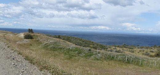 Nous retrouvons le bitume avec un passage un peu plus dans les terres. Nous faisons une pause grignotage. Les montagnes enneigées ne sont vraiment pas loin, en nous retournant, nous voyons le glacier Ventisquero Colgante. Les panneaux kilomètres changent de nouveau. Maintenant, ils annoncent la distance de Coyhaique, du coup, ils diminuent. Les distances des différentes sont fausses. Bref, c’est du grand n’importe quoi…
