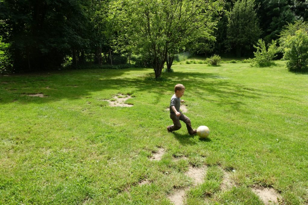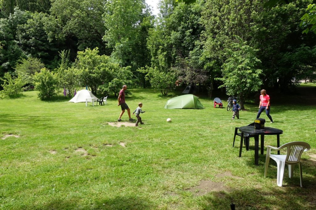 Le petit-déjeuner terminé, Maman file ranger les affaires et aide Martin à prendre sa douche. Papa finit de vérifier les chaînes puis file sous l’eau chaude avec Lucas. Durant les temps où ils n’ont rien à faire, les enfants jouent au football avec Emelyne et Olivier. Avec tout ça, nous mettons un bon moment avant d’être prêts, il est déjà midi ! Edson est parti devant, nous le rejoindrons ce soir sur le lieu de bivouac que nous avons repéré.