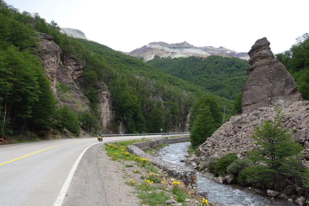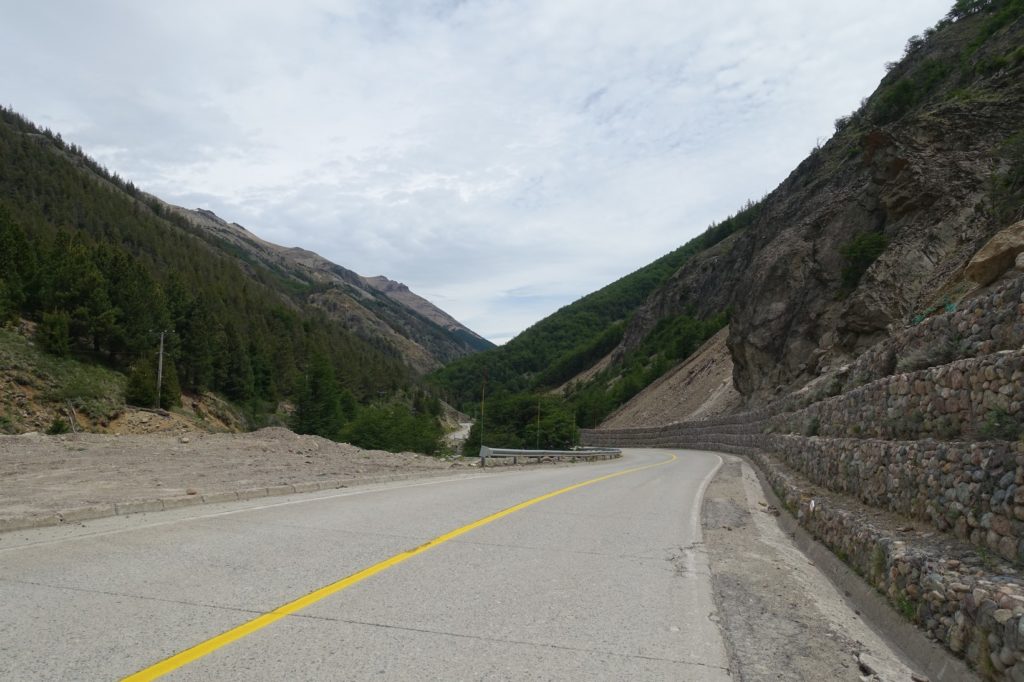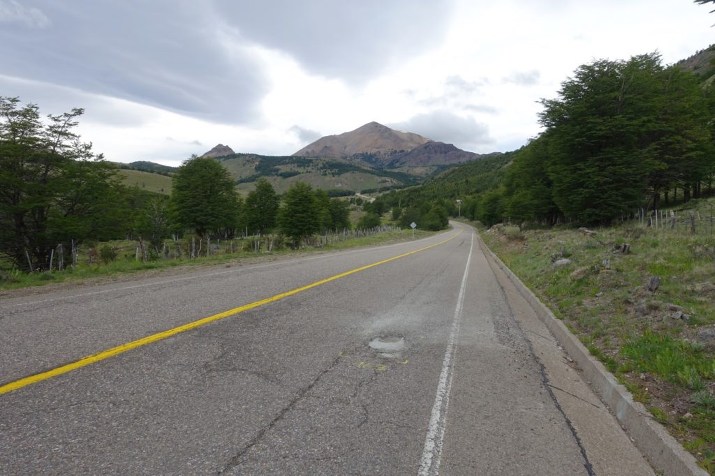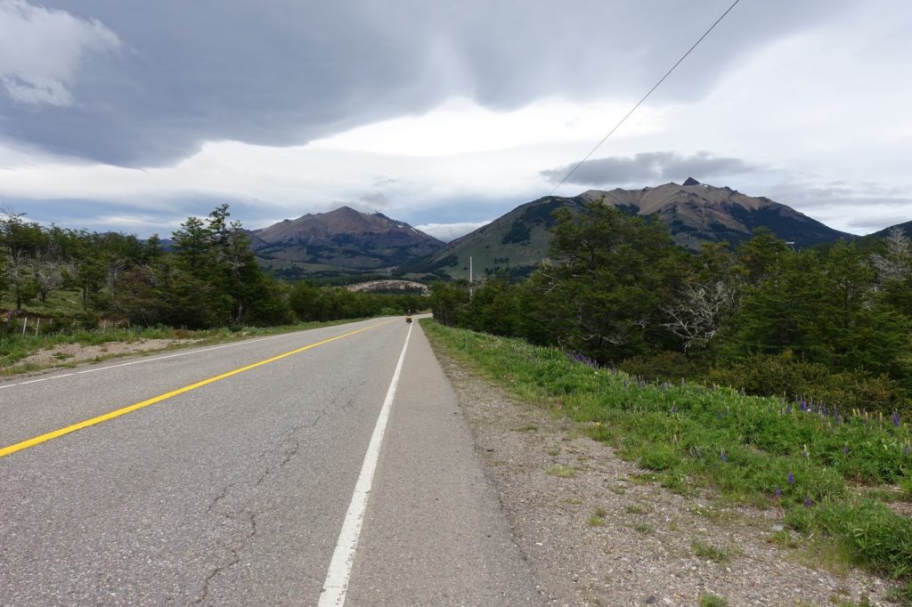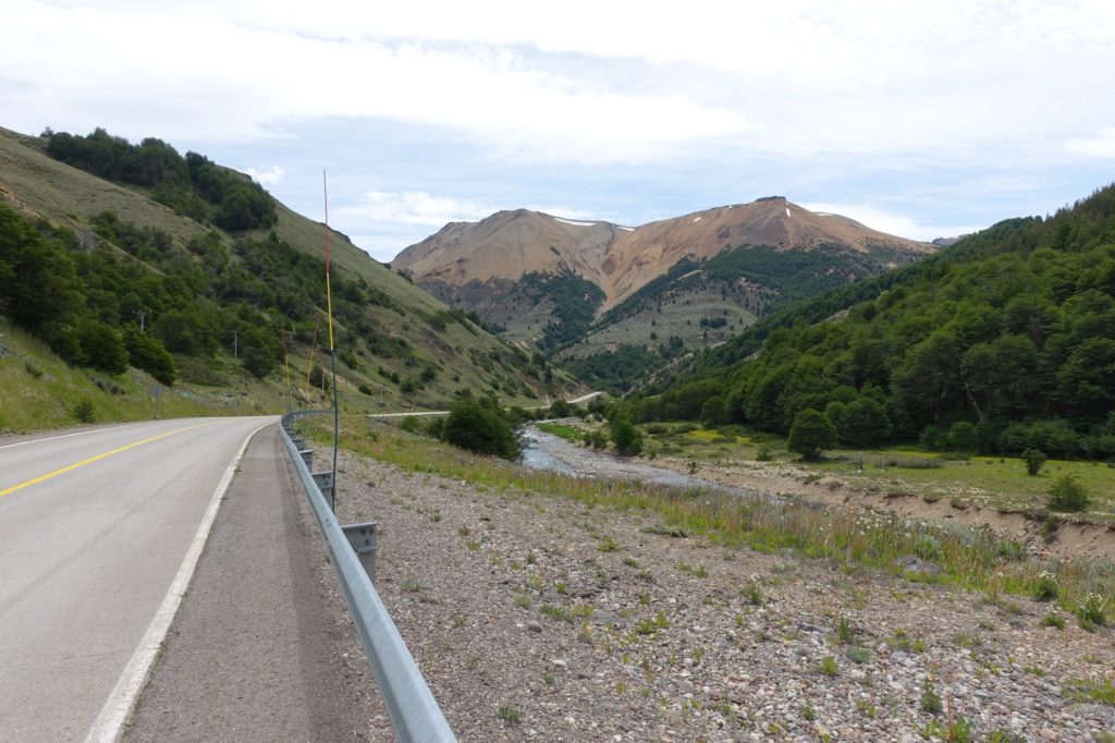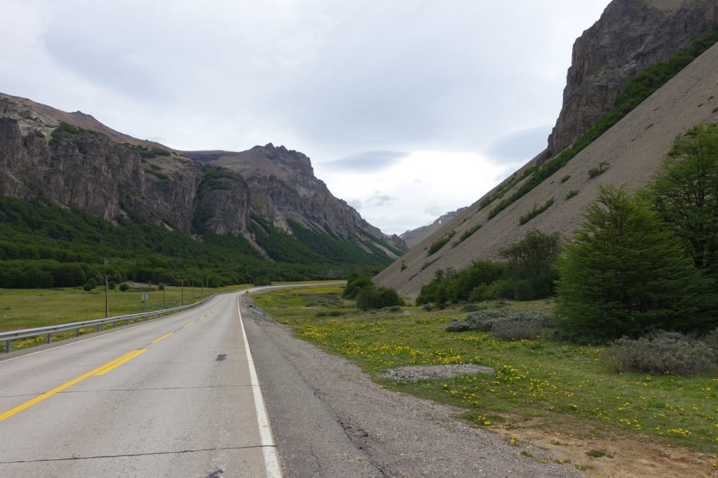 C’est reparti. Ça y est, la route a tourné, le vent est maintenant de face, il nous ralentit bien ! Et surtout, nous ressentons encore plus le froid ! Les paysages changent un peu, les montagnes sont maintenant pelées, il n’y a plus beaucoup de fleurs au bord de la route.