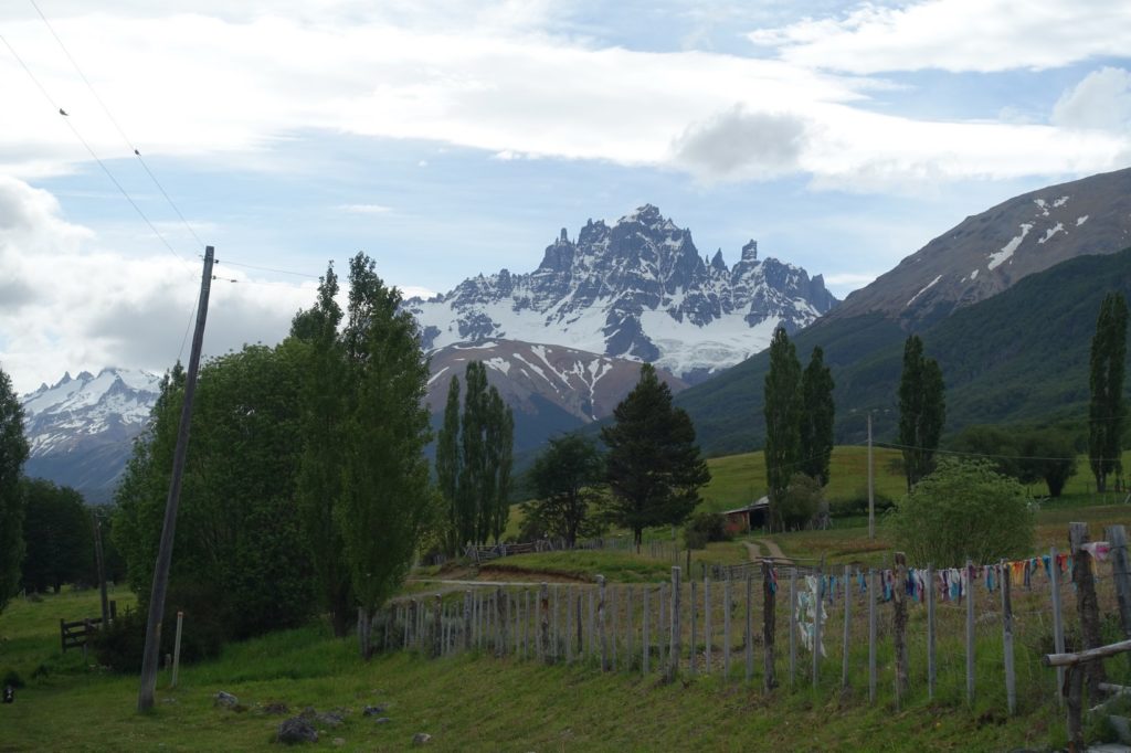 Nous nous arrêtons au camping juste en bas, nous sommes fatigués. Ce n’était pas convenu mais nous y retrouvons Edson et Lucas. Le camping est petit et vraiment pas cher, il y a une belle vue sur le Cerro Castillo ! Nous installons la tente, les enfants se posent à l’intérieur après une belle petite crise de Lucas (le notre, pas l’italien hein !).