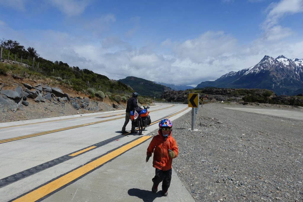 Nous attaquons la montée, elle fait seulement 7 kilomètres mais le vent la rend très difficile. Par moment, nous devons nous arrêter pour ne pas tomber de vélo. Maman et Edson se retrouvent même à pousser à certains endroits, impossible d’être sur le vélo ! Nous n’avons jamais eu autant de vent, c’est impressionnant ! Les rafales nous donnent des claques ! Ce n’est pas évident de retranscrire ça avec des photos et du texte, il faut le vivre pour vraiment comprendre…
