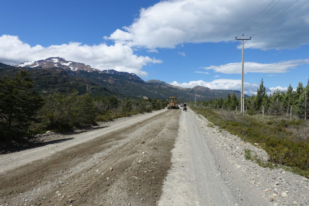 Nous continuons notre lutte et croisons les carabineros. Ils s’arrêtent au niveau de Maman et lui explique que ce serait mieux de rouler à droite. « Euh, je sais bien mais la piste à droite est très mauvaise, il y a trop de terre, je ne peux pas rouler là-dedans ! » – « Oui, c’est vrai, soyez prudente quand des voitures arrivent en sens inverse. ». Ils sont compréhensifs, heureusement !