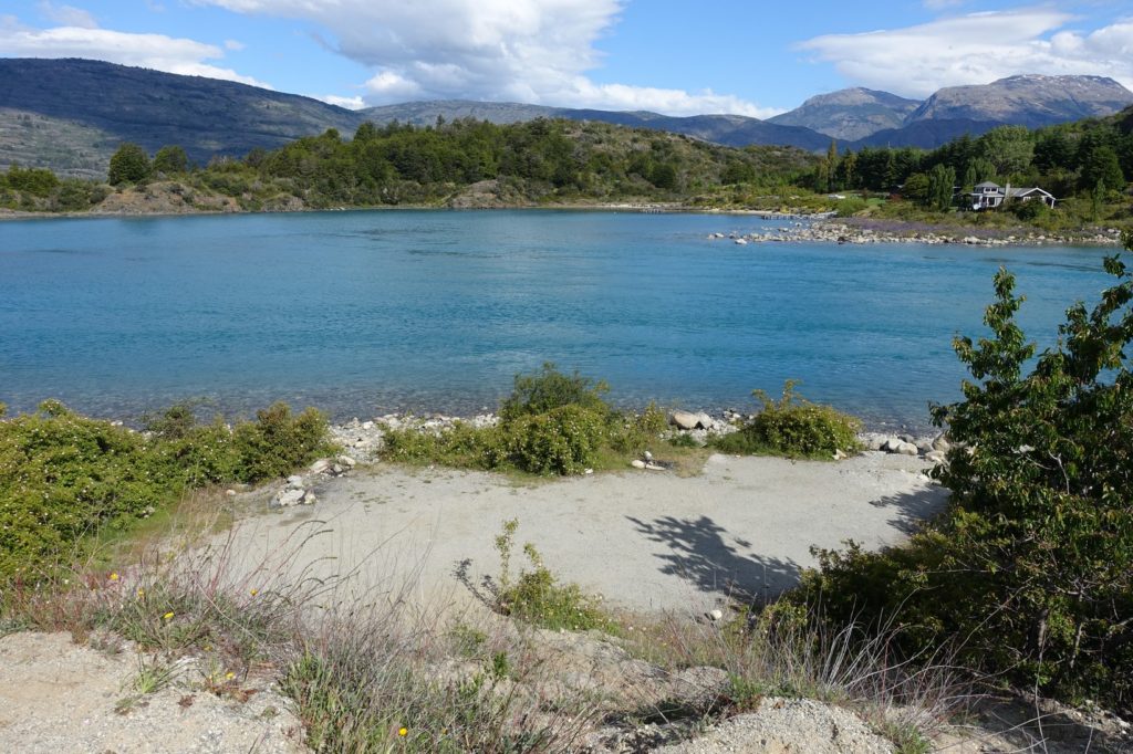 Nous sommes au bord du lac, à cet endroit, il rejoint le Lago Bertrand. Nous nous répétons, mais la couleur de l’eau laisse rêveur (sa température un peu moins tout de même !). Impossible de planter la moindre sardine,nous sommes en fait sur du béton ! Nous nous débrouillons avec des pierres. Nous sommes un peu abrités du vent, par contre, il risque de pleuvoir, nous verrons bien demain ce que ça va donner.
