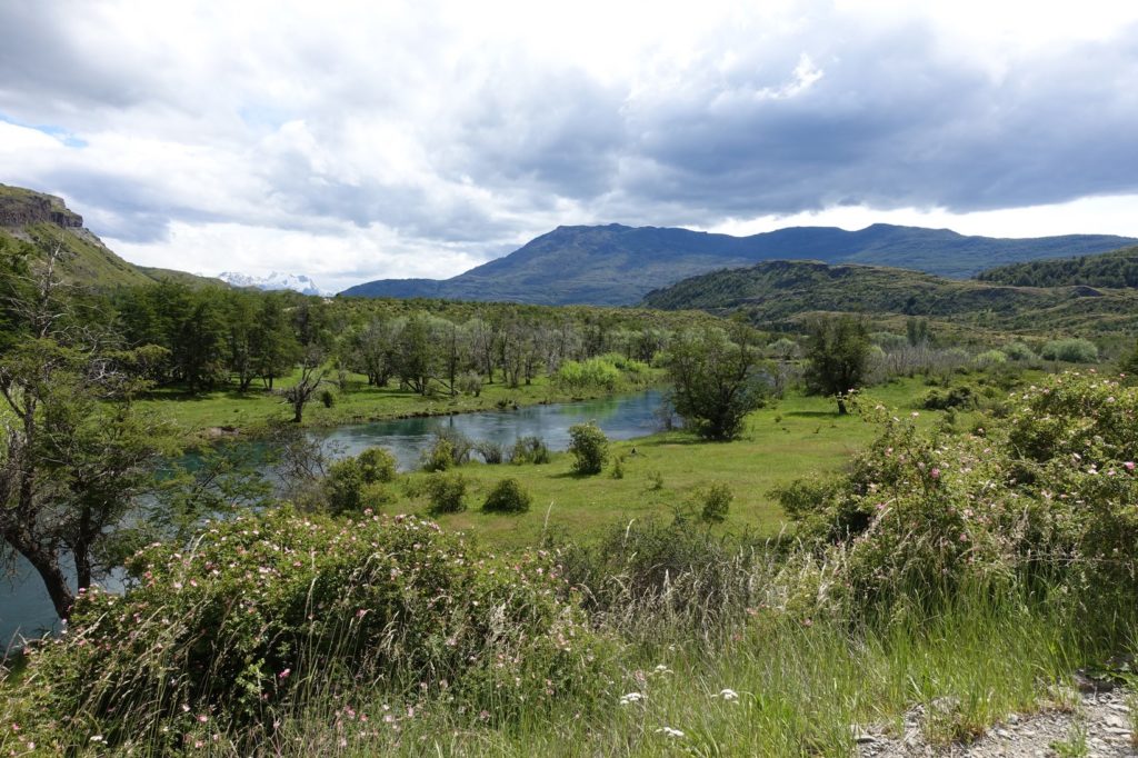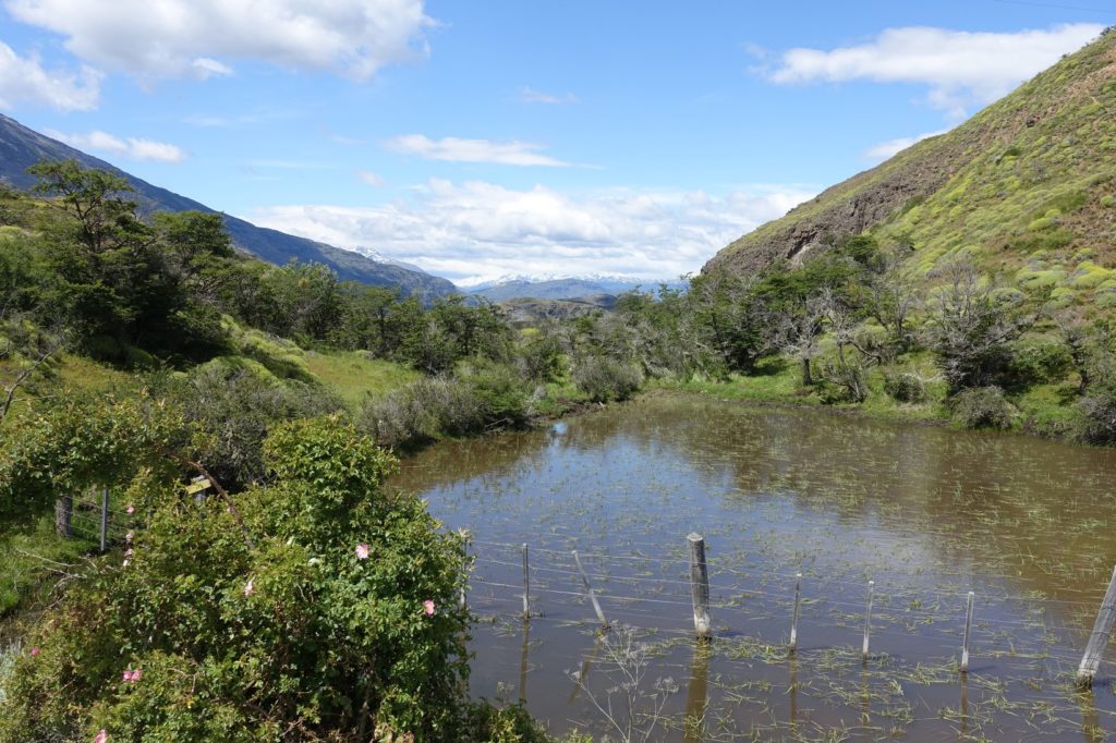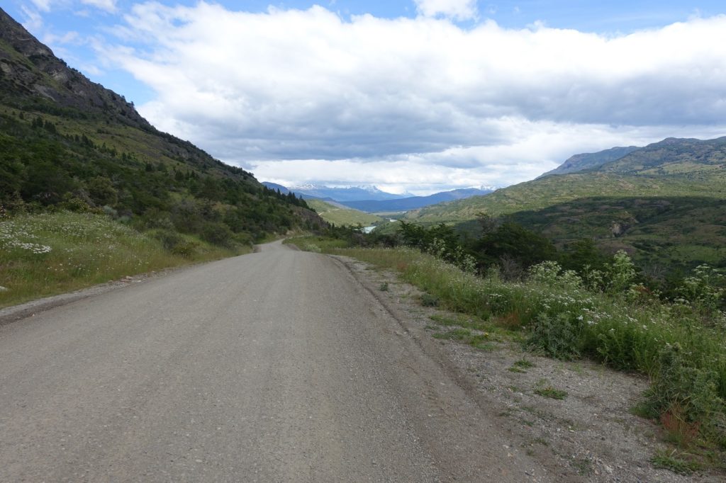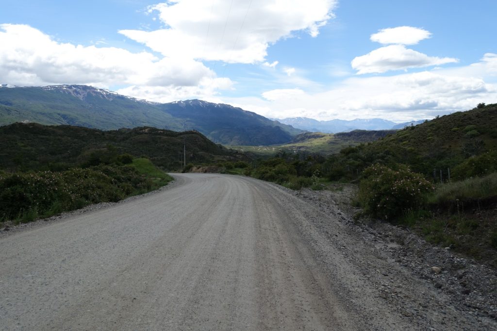 Encore une montée, il est bientôt l’heure de manger, nous cherchons donc un endroit où nous poser. Et sur qui nous tombons ? Notre cher Edson ! Il a de nouveau crevé ! C’est vraiment pas de chance… Du coup, nous décidons de rester là pour déjeuner. Une cycliste canadienne arrive à notre hauteur, elle est partie de Puerto Montt direction Ushuaïa.