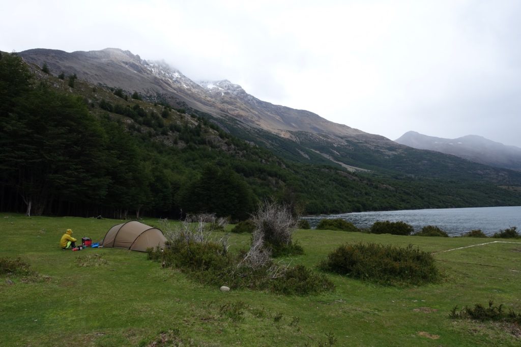 Nous croisons deux français. Ils avancent vite et ont déjà fait le sentier le long du lago del desierto avec leurs vélos faute de bateau. Ils espèrent avoir un bateau pour rejoindre O’Higgins mais risquent d’être déçus, normalement, il n’y en a pas aujourd’hui, ni demain. Puis nous croisons un allemand avec une remorque. Il a du mal, avance doucement. Ce n’est pas facile tout seul et les deux français ne sont pas restés pour l’aider !