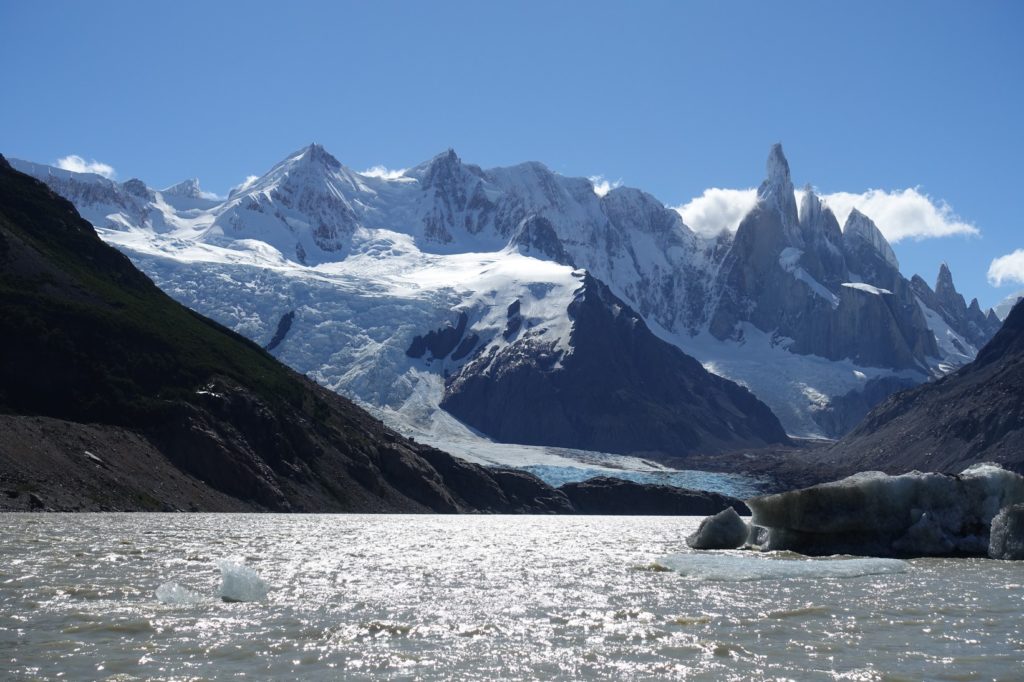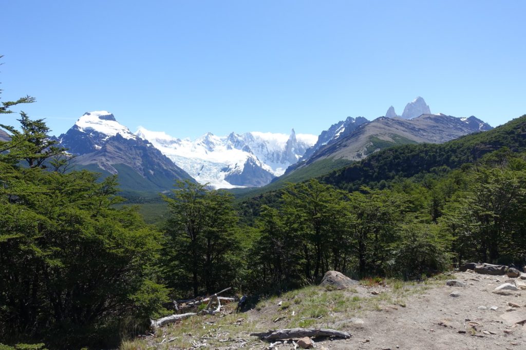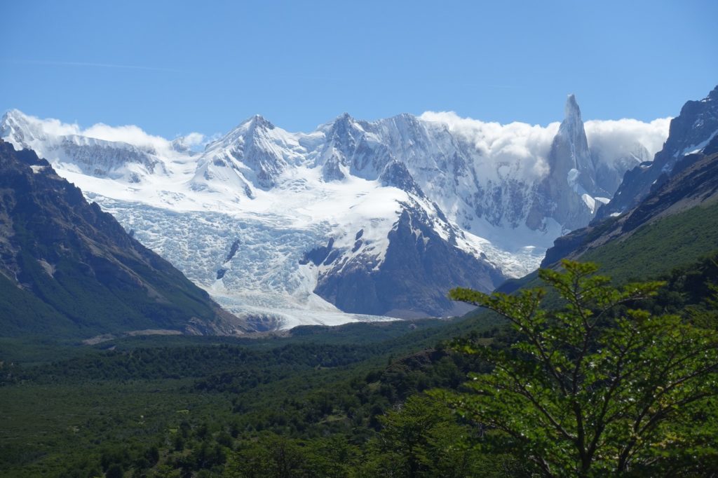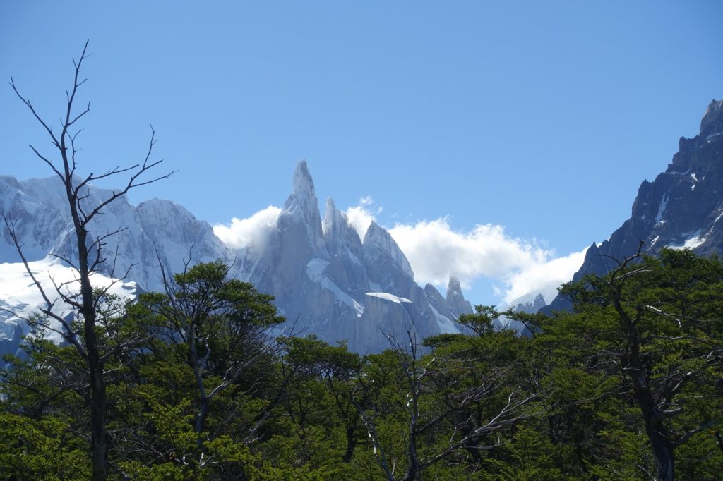 Du côté de Papa, 2h aller, 2h retour, et des belles vues sur le cerro Solo et le cerro Torre, ainsi que la ribambelle d’aiguilles qui jouent à cache-cache avec les nuages qui débordent par derrière !