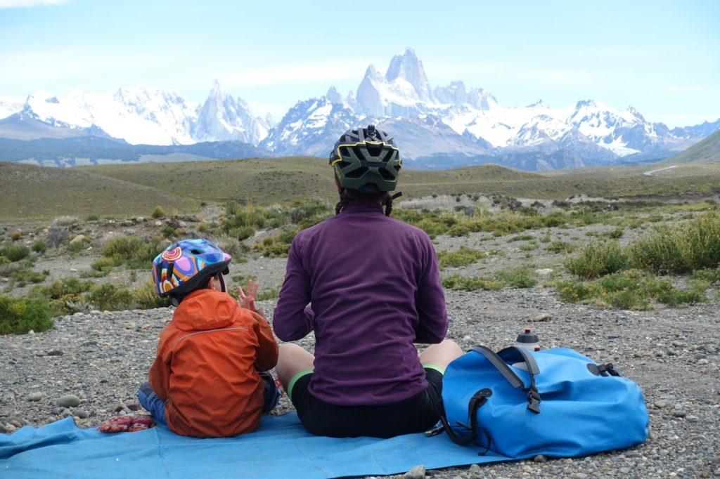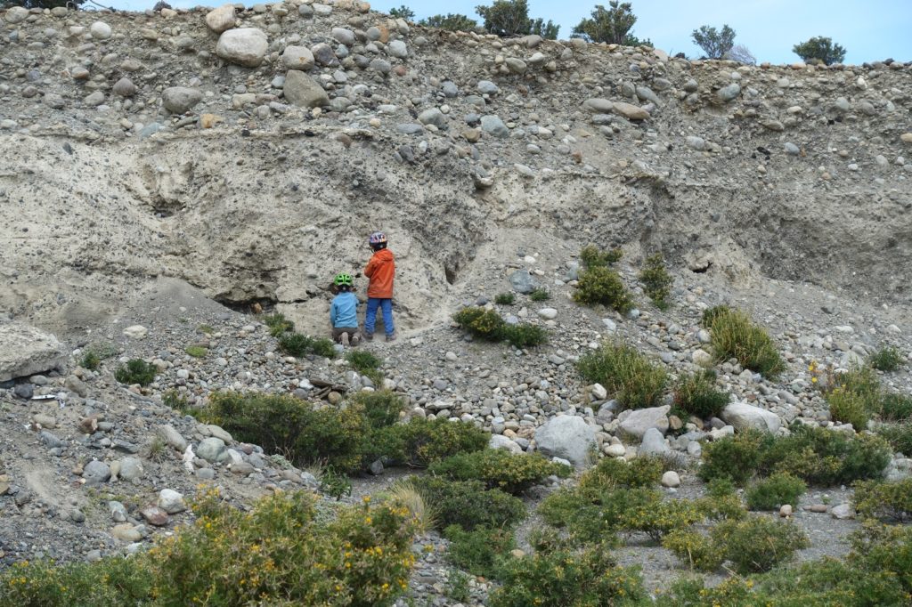 Pour la pause déjeuner, nous nous installons au bord de la route, nous profitons encore un peu de la vue ! Leur sandwich avalé, les enfants vont vite jouer dans la terre.