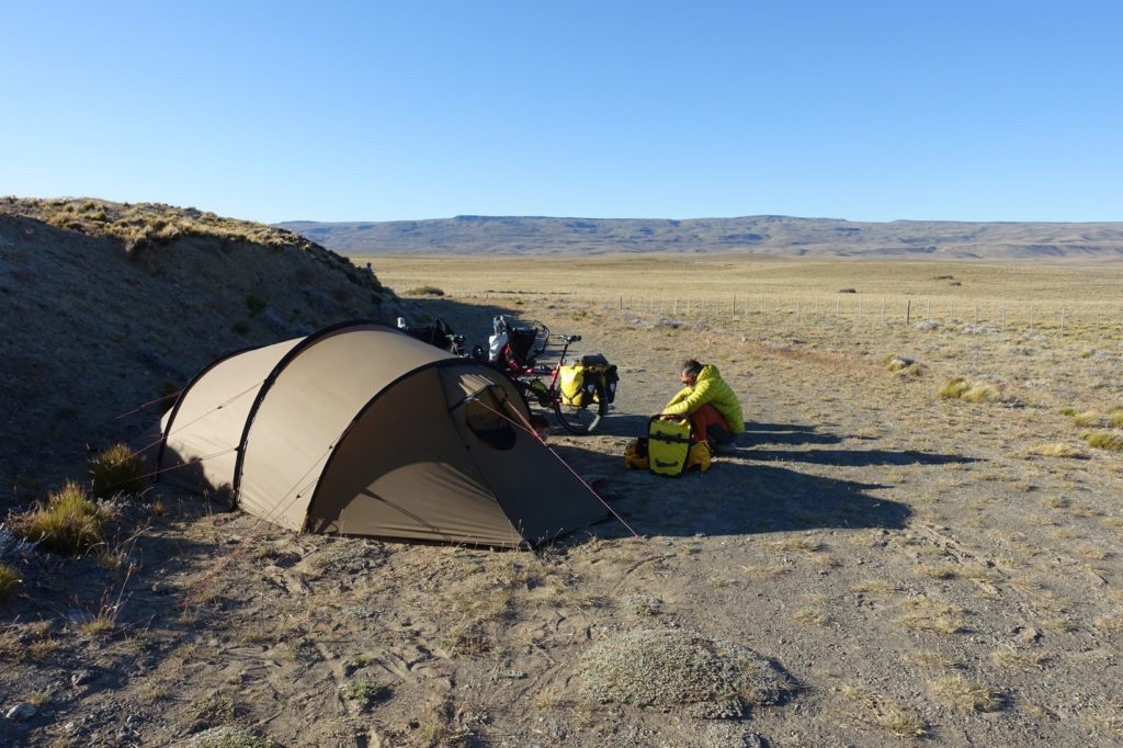 Tout est plus facile avec le vent dans le dos et nous filons à vive allure. Nous parcourons 25 kilomètres rapidement et arrivons à un lieu de bivouac. C’est une petite colline qui nous protège un peu du vent. Nous serons très bien ici !