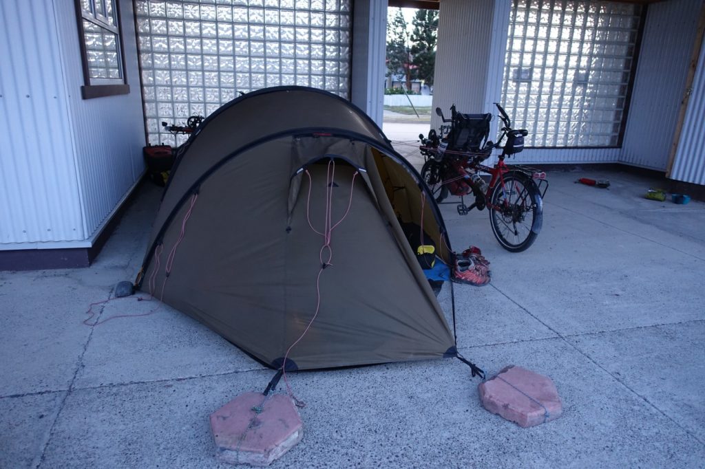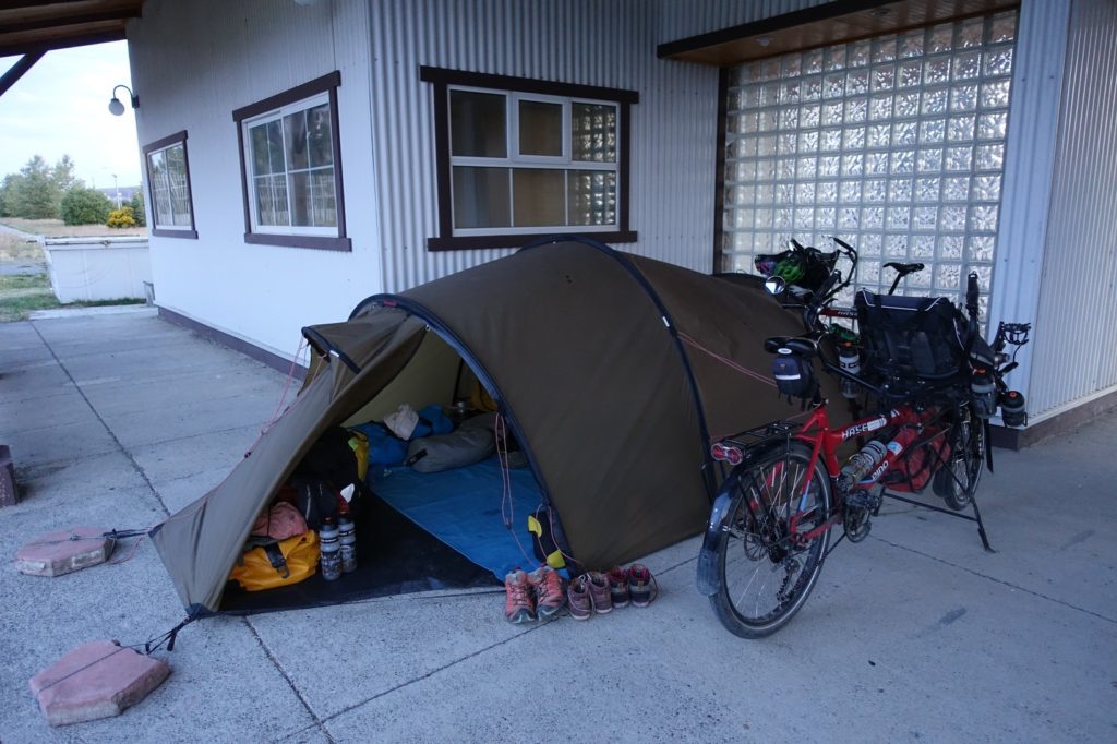 Nous allons ensuite vers le centre, il est déjà plus de 18h30, nous sommes crevés. D’après iOverlander, il semble que nous pouvons dormir dans la salle d’attente de la station de bus. En effet, elle est top ! Il y a 3 canapés, c’est grand confort. Un couple de cyclistes canadiens l’occupe. Nous les avions déjà vus à la première station AGVP juste avant la piste, ils ont fait le détour via la ruta 40 et ont fait du stop ensuite, ils avaient peur de prendre la piste.