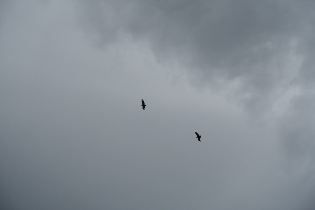 Le vent s’est levé. Nous trouvons un endroit un peu abrité pour déjeuner. Des grands condors nous tournent autour, ils sont majestueux, nous les regardons un bon petit moment. Dommage que nous n’ayons pas un plus gros zoom (mais nous sommes quand même très contents de notre appareil !).