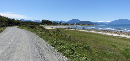 Nous nous faisons doubler par un pick-up qui ralentit à notre hauteur. Trois hommes sont à l’intérieur, ils nous font profiter de leur musique. Un peu plus loin, ils s’arrêtent et nous attendent. Nous discutons un peu. Ils offrent des biscuits et des bonbons aux enfants. Ils viennent de pêcher et nous proposent un saumon, nous déclinons poliment car nous ne pourrons pas facilement le cuisiner. Dommage.