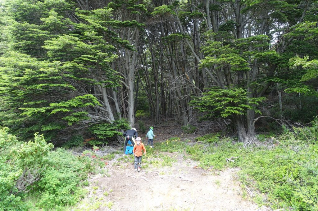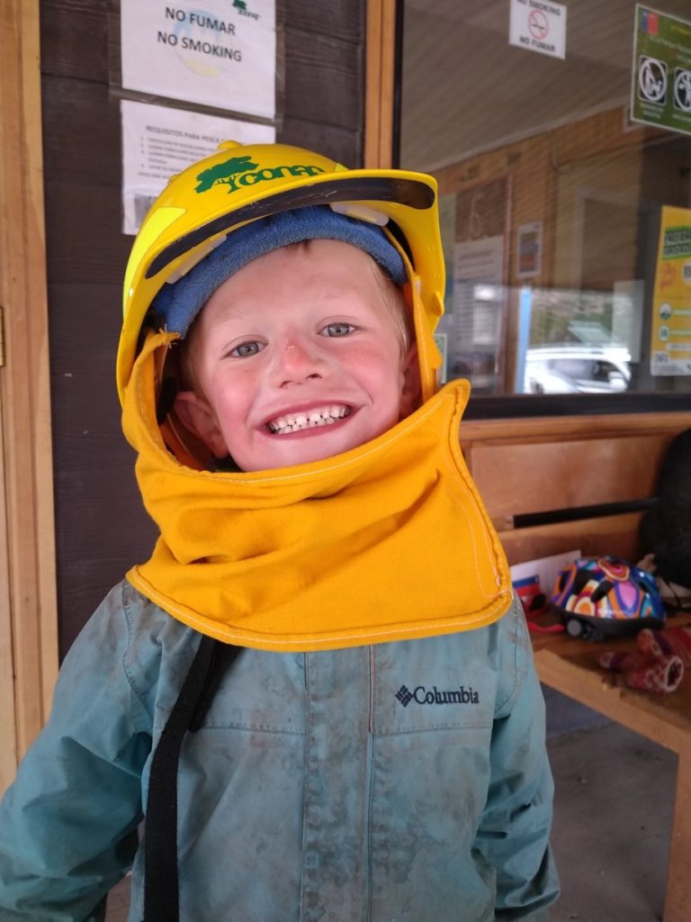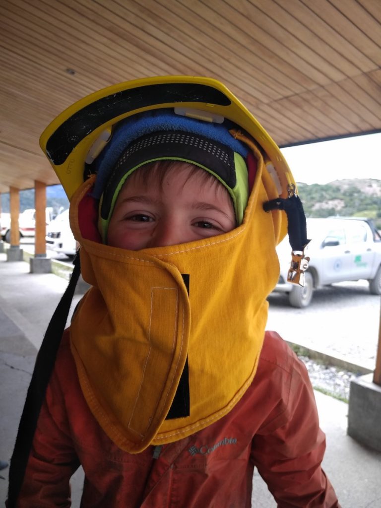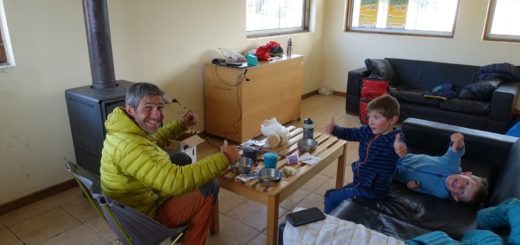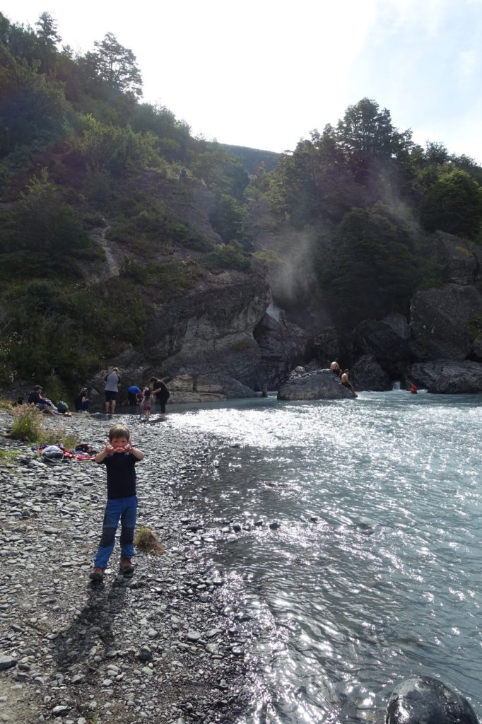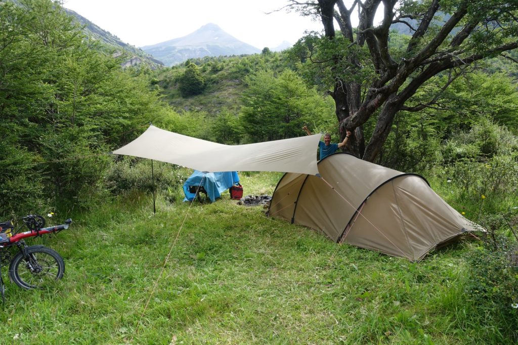 Nous rejoignons une zone de camping près d’une cascade. Il y a beaucoup de chiliens et de la musique. Un gars s’amuse à faire des tours de quad, c’est vite agaçant et dangereux pour les enfants. Mais nous trouvons un coin tranquille. A peine posés, les enfants vont déjà voir les voisins et se font offrir une boisson. Ils sont incroyables ! L’allergie de Maman fait des siennes, elle éternue toutes les deux minutes ! Nous montons la tente et le tarp car nous sommes régulièrement dérangés par des petites averses. Ça y est, nous sommes bien installés !