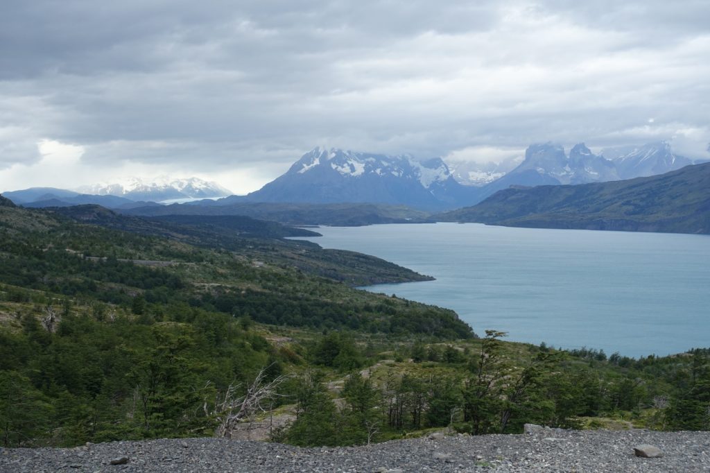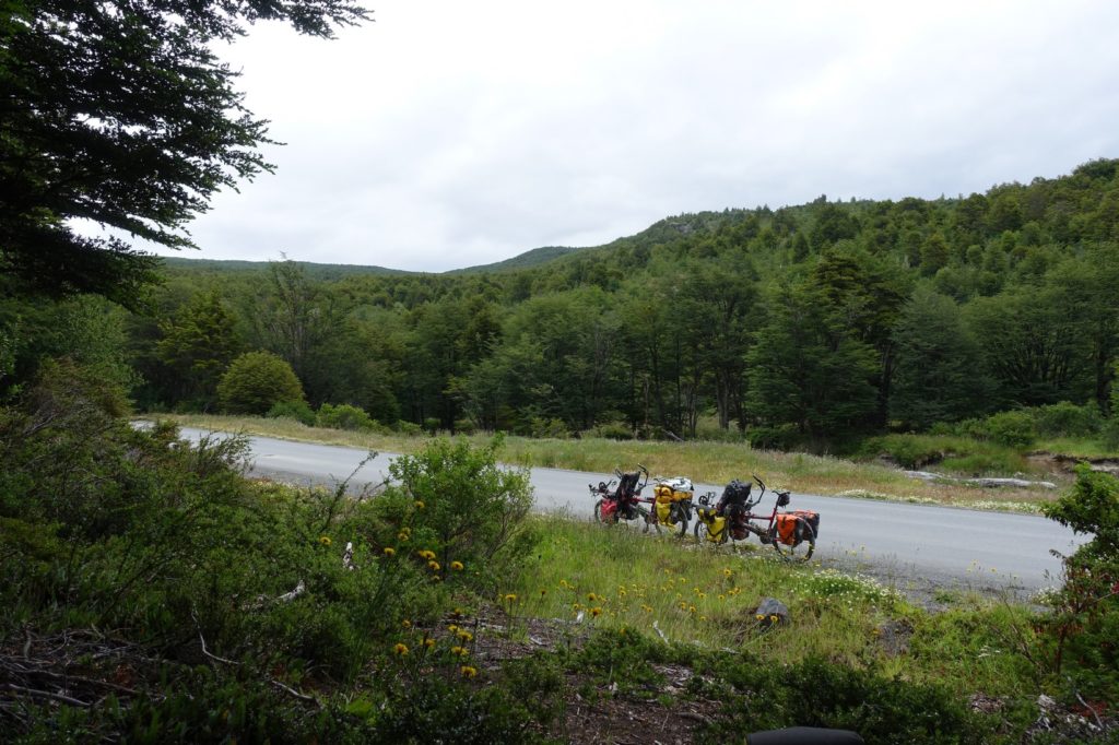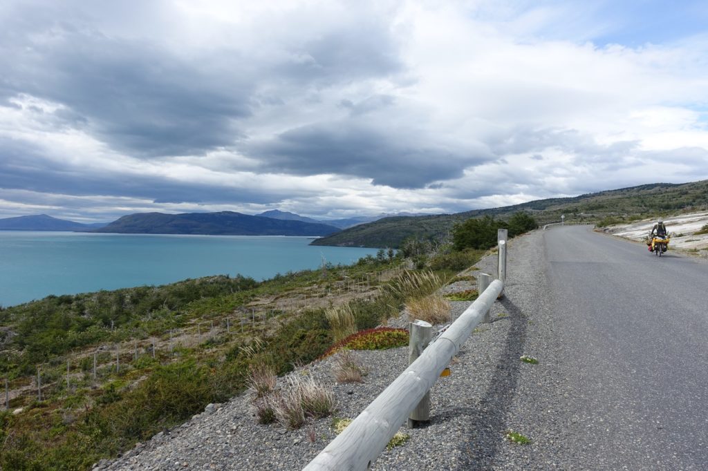 Avec la sortie, nous retrouvons l’asphalte. Pour ne pas trop être perdus, nous avons tout de même droit à quelques zones non goudronnées. Nous profitons de la vue sur le Lago del Toro et sommes aidés par le vent pour les montées. Au sommet, quelques gouttes nous empêchent de prendre le déjeuner. Nous repartons donc chercher un endroit abrité de la pluie pour manger.