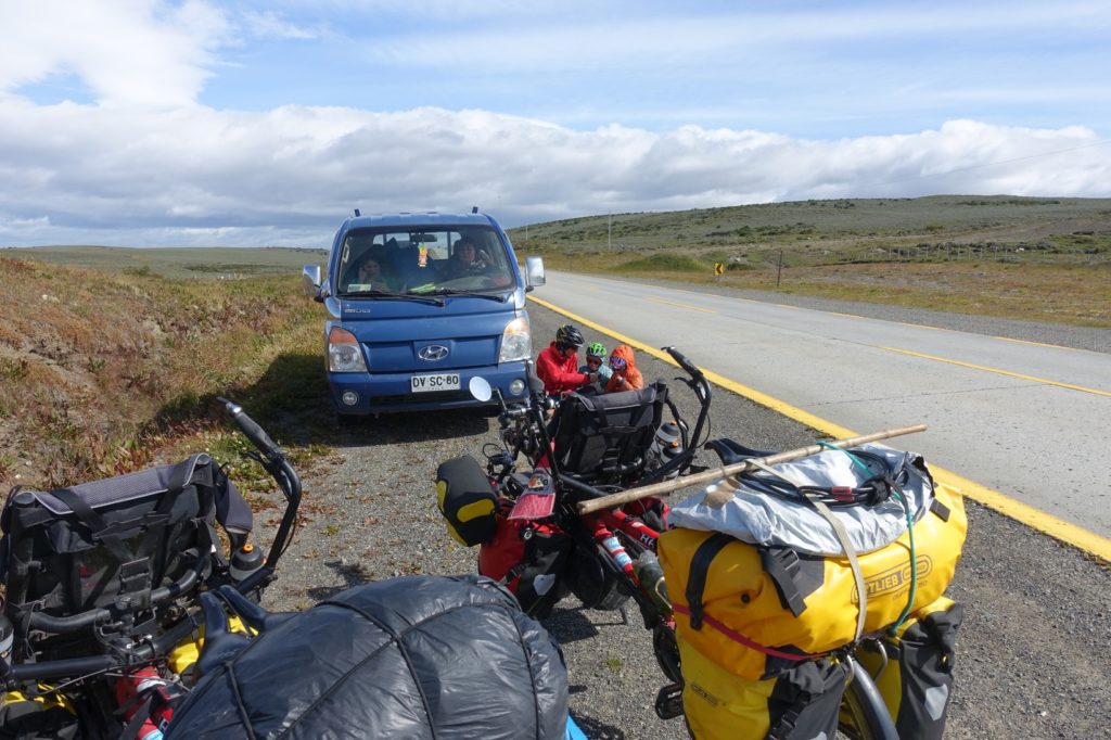 Pour demain, nous ne savons pas trop. Punta Arenas n’est plus qu’à 53 kilomètres mais la météo annonce un vent très fort et pas vraiment favorable… Surtout à la fin. Maman pense qu’il nous faudra deux jours.
