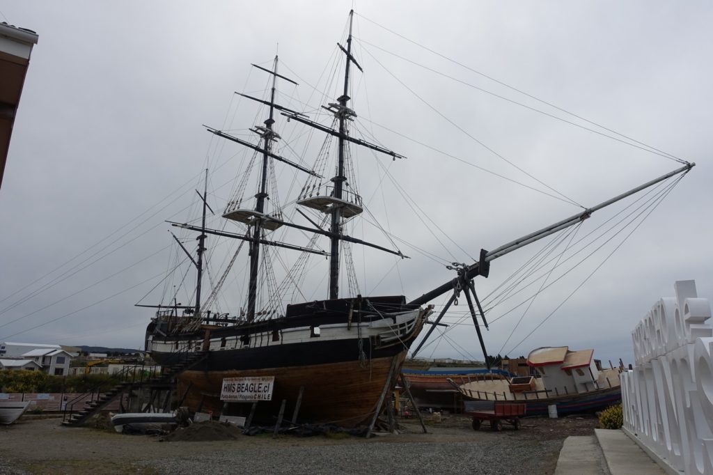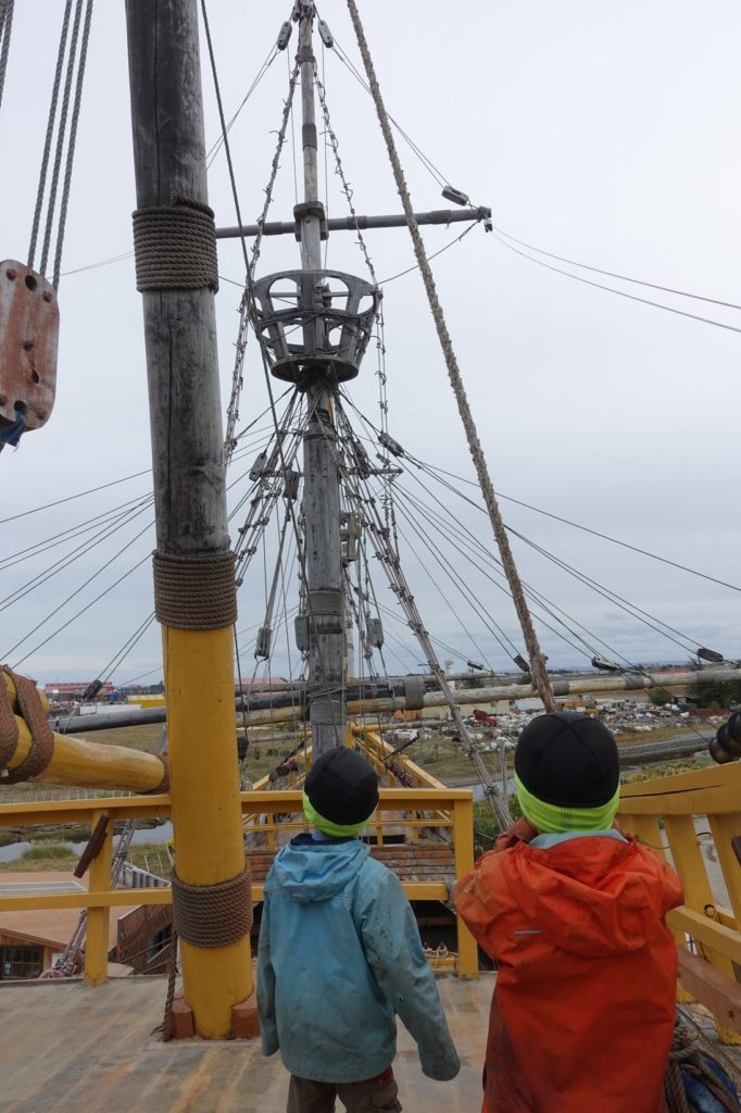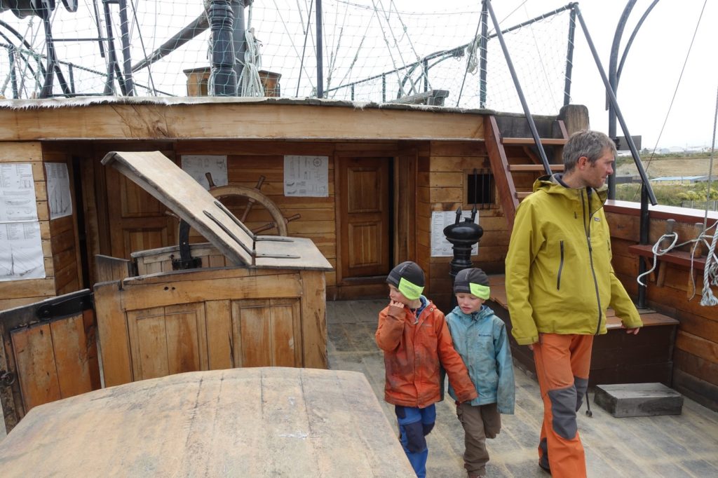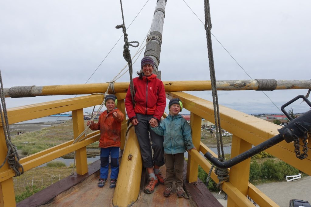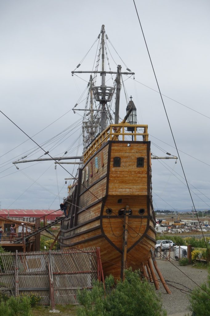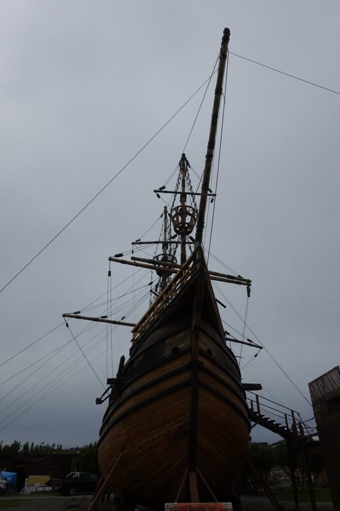 Le musée du détroit est juste à côté, nous décidons d’y aller malgré la réticence de Martin. Mais une fois sur place, il est émerveillé ! Il y a une réplique d’un bateau de Magellan, le Victoria, et une du bateau de Darwin, le Beagle. Nous pouvons monter dessus !
