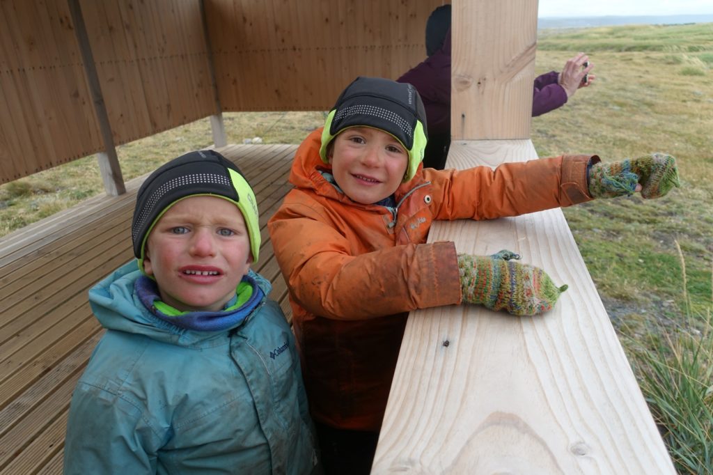 C’est reparti, 18 kilomètres plus loin, nous arrivons à un autre refuge. Il est 11h30 mais nous décidons de ne pas manger là et de continuer jusqu’au parc des pingouins. A l’intérieur, il y a un beau dessin d’un pino !