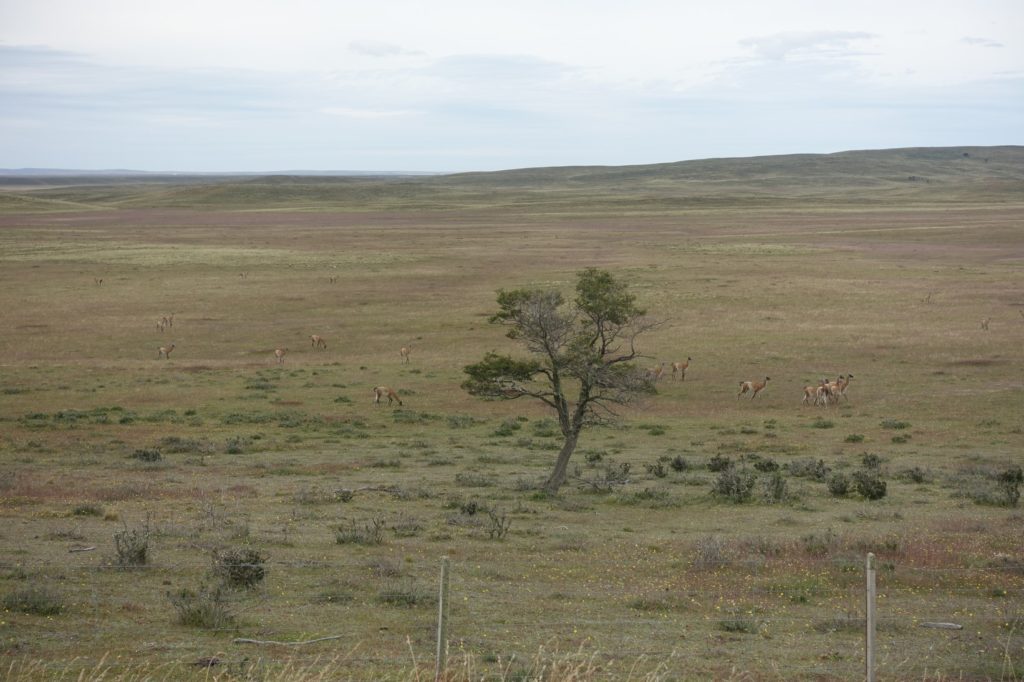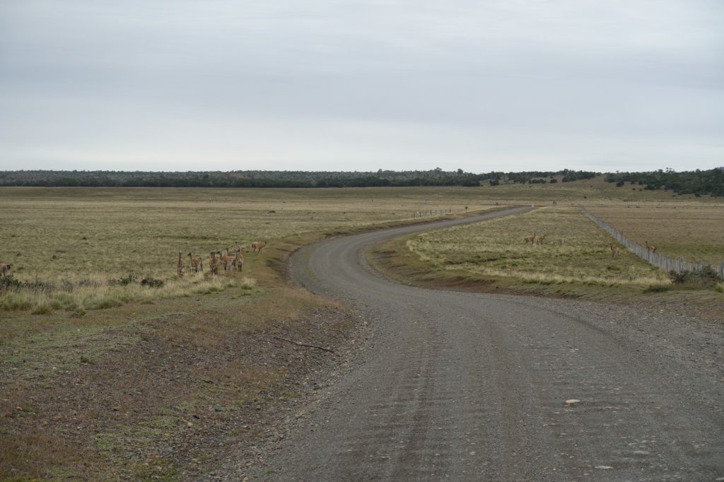 A peine passés les bâtiments, nous voilà dans la pampa et nous retrouvons les guanacos.