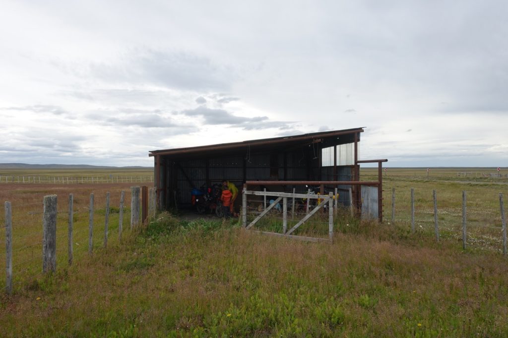 Pour la nuit de ce soir, nous visons un abri pour animaux décrit sur iOverlander. Nous croisons le berger, il tente de rattraper un mouton avec son chien. Nous le laissons travailler, nous lui demanderons la permission à son retour. Le chien court un bon moment, mais il remplit sa mission. Nous voyons l’homme revenir. Nous lui demandons donc si nous pouvons camper dans l’abri. Aucun problème ! En fait, c’est un lieu où ils tondent les moutons. C’est très propre, nous y serons très bien, surtout que le vent commence à souffler fort. Il nous demande si nous avons besoin de quelques choses, nous lui demandons de l’eau et du pain (à l’achat).