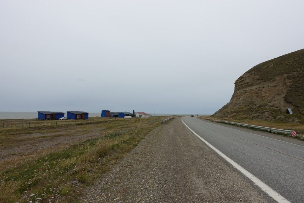 Nous passons le virage et avançons maintenant vent dans le dos et nous allons vite ! En deux heures, nous avons déjà fait 32 kilomètres. Les montées sont des formalités. Nous longeons l’océan, les guanacos veillent toujours sur nous. Nous nous faisons doubler par le couple de cyclistes que nous avions vu en arrivant. Ils ne sont pas très bavards et avaient déjà snobés les enfants quand ils leur avaient parlés à la boulangerie…