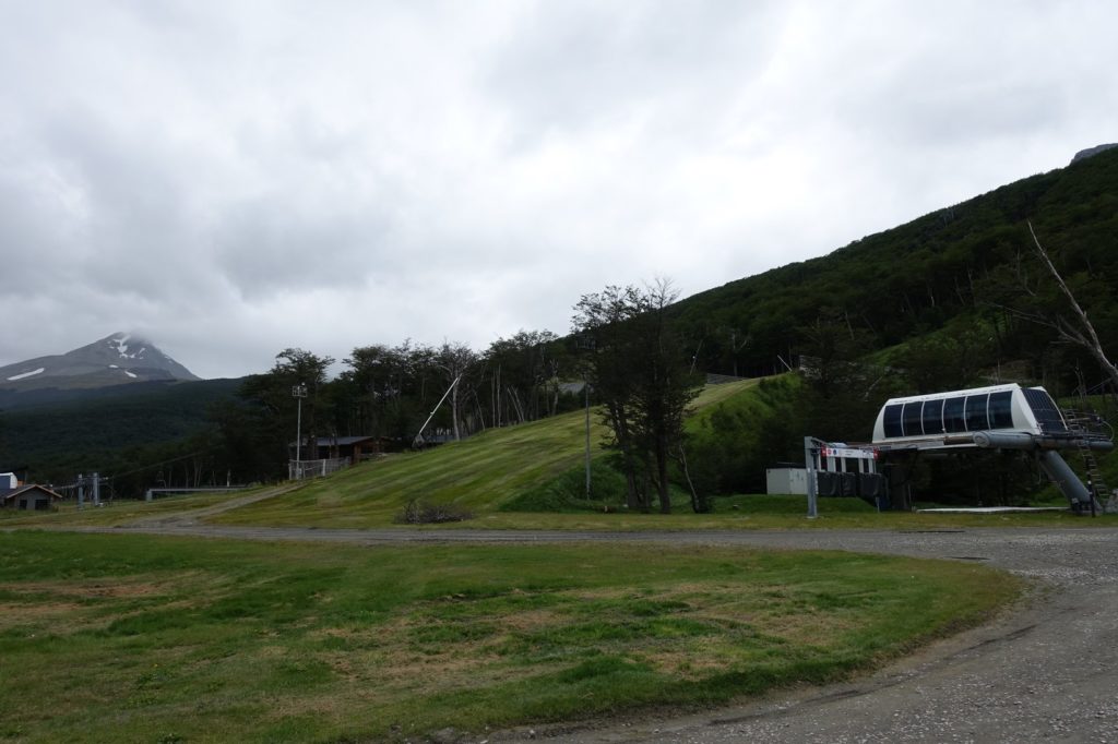 Il pleuviote de temps en temps, nous cherchons désespérément un endroit un peu abrité mais nous ne trouvons rien. Au final, nous tombons sur une station de ski ! Nous nous posons devant l’infirmerie et mangeons assez rapidement. Nous avons de la chance, c’est pendant notre pause qu’il se met à pleuvoir. C’est la première fois que nous voyons une station aussi basse, 195 mètres d’altitude au pied des pistes !