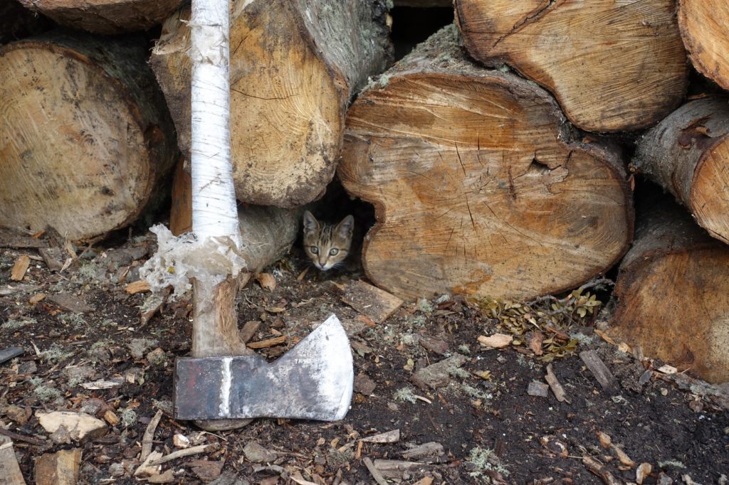 Ensuite, c’est opération coupage de bois ! Martin sort avec Augusto et ses fils Benjamin et Bryan. Papa va avec eux. Ils retrouvent les deux petits chatons pour le plus grand bonheur de Martin. Par la suite, ils sont rejoints par Lucas.