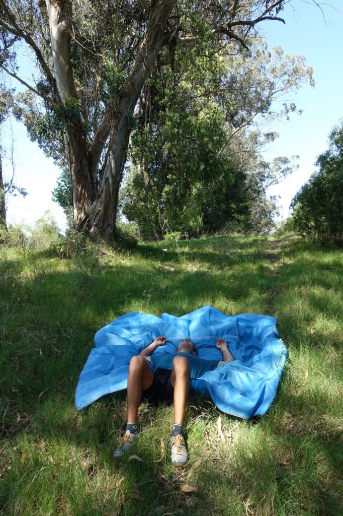 Il est plus de 13h30, c’est l’heure de la pause déjeuner. Nous sommes crevés ! Nous dénichons un coin à l’ombre et mangeons. Nous prenons même le temps de nous allonger un peu.