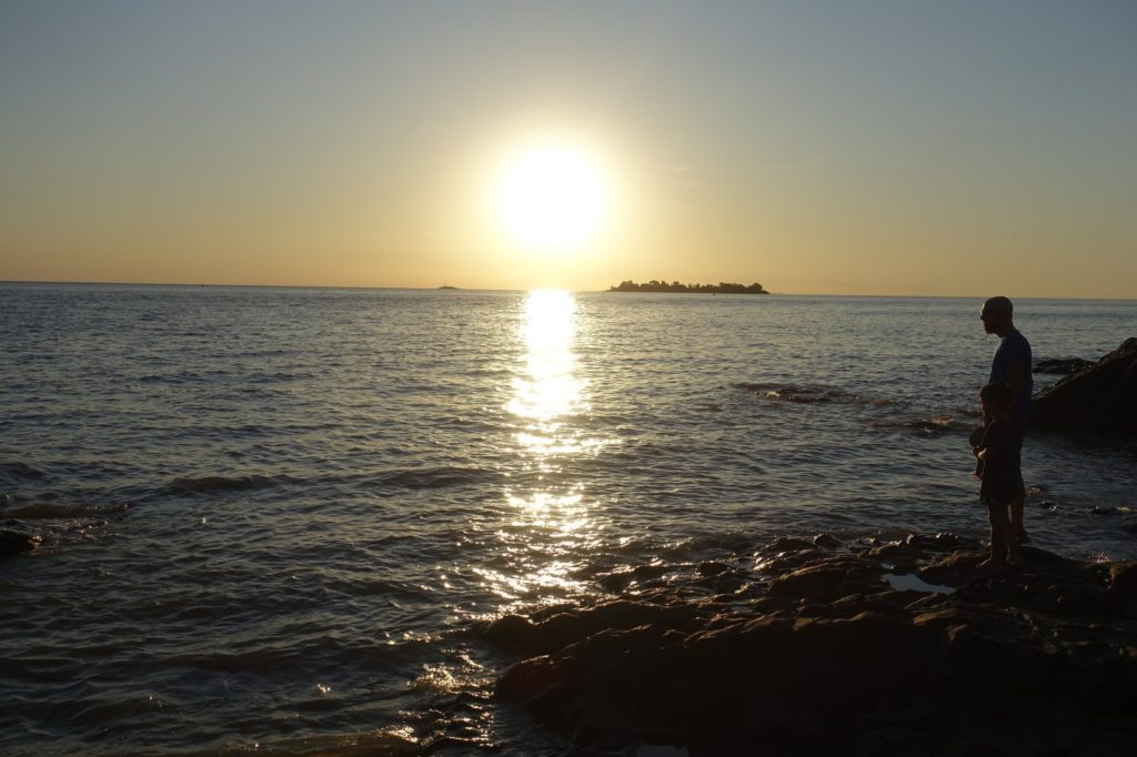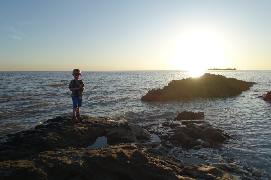 Nous retournons ensuite voir le coucher du soleil, nous ne nous en lassons pas ! Martin trouve de quoi fabriquer une canne à pêche, il est ravi !