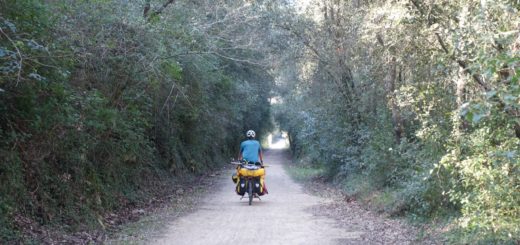 De nouveau une route barrée ! Pour la peine, nous n’avons pas du tout envie de prendre la grosse route juste à côté. Mais voilà qu’un groupe de cyclistes arrivent, ça passe à vélo. Parfait !
