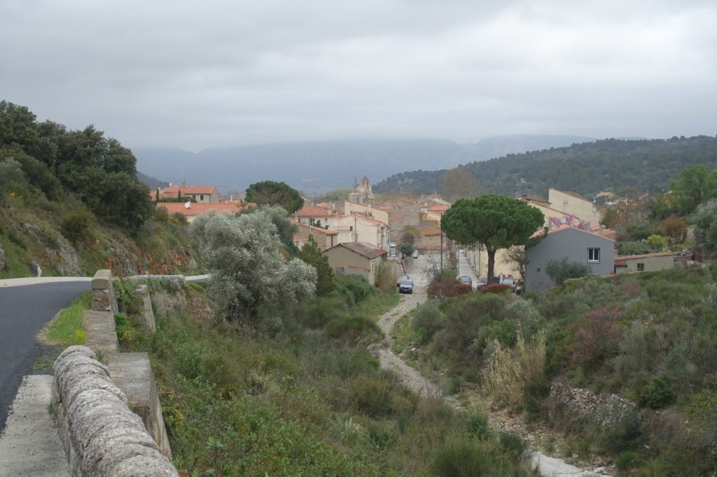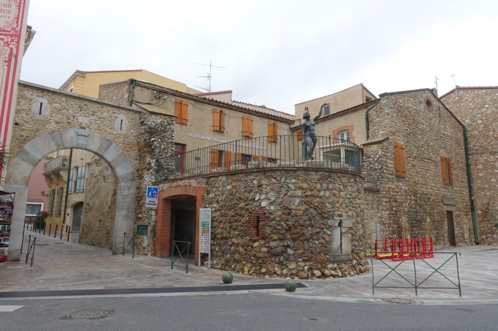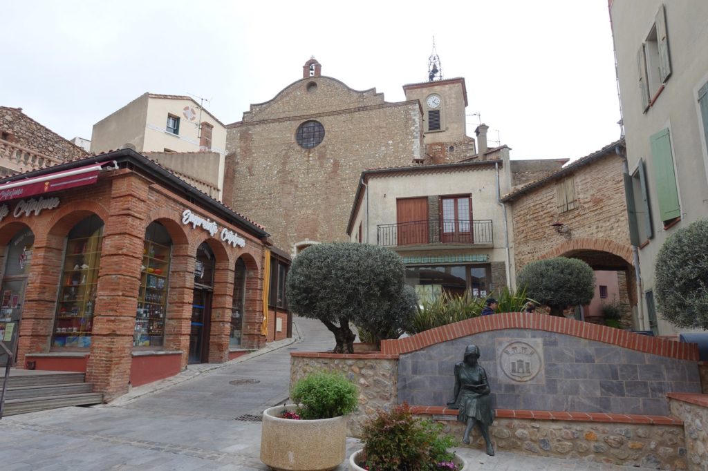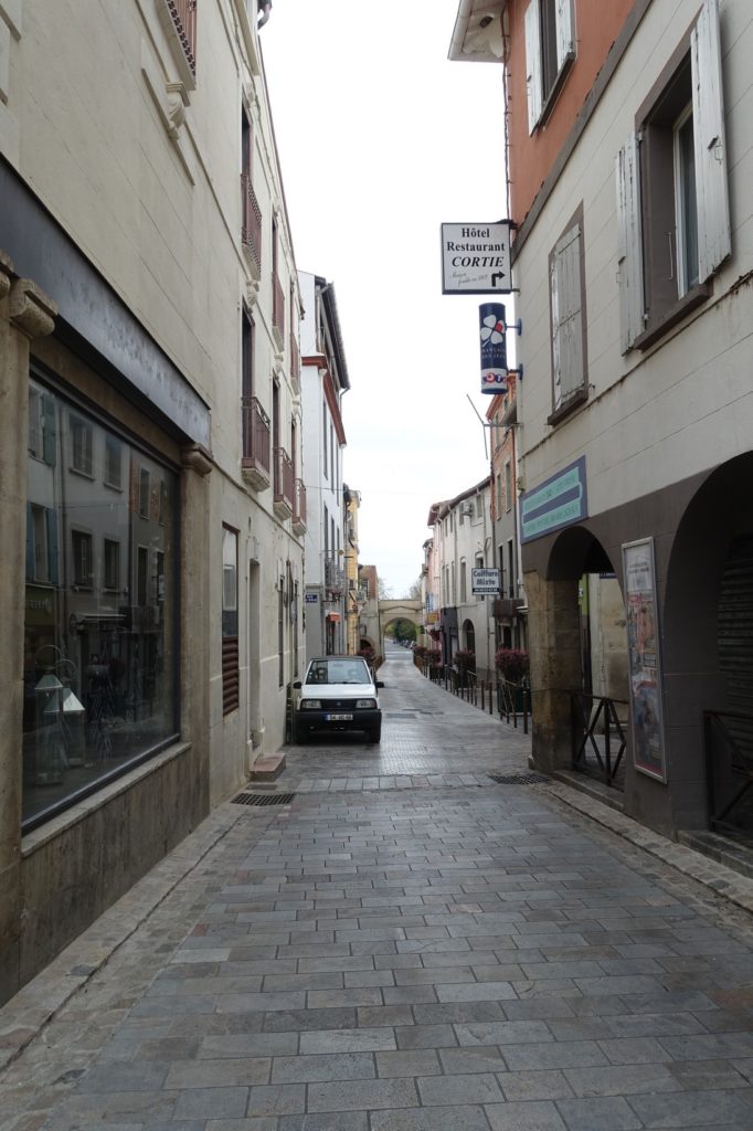 Nous continuons la route jusqu’à Thuir qui ressemble vraiment à un village fantôme ! Nous déjeunons sur une place, le parc est fermé, les nuages sont partout, il fait froid… Les quelques personnes qui passent sont celles qui vont voter.